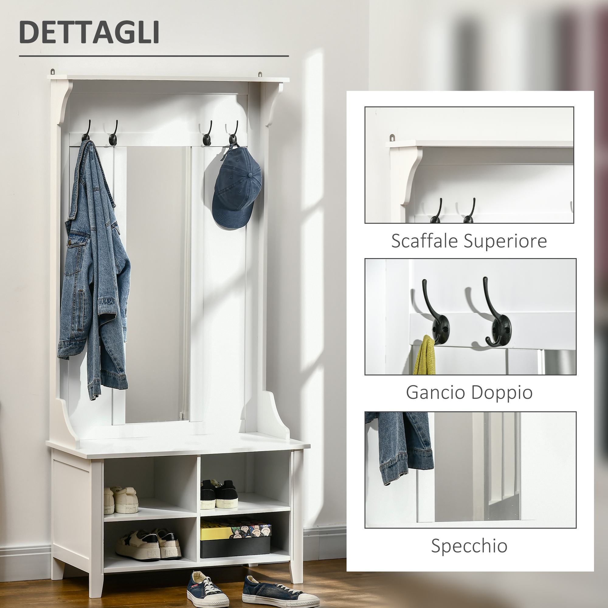 Divertiti con il fai-da-te e ottieni diversi layout di archiviazione con questa scarpiera ad incastro di . Realizzato in robusto materiale PP, è eco-compatibile e non danneggerà l’ambiente. E il telaio metallico è resistente per molti anni a venire. Può anche essere usato per organizzare i tuoi giocattoli e altri oggetti per mantenere la tua casa in ordine.Caratteristiche:• Scarpiera fai-da-te, facile da costruire e smontare• Costruito da pannello in plastica PP e connettore ABS, sicuro e innocuo• Dispone di 12 cubi, fornendo ampio spazio per le scarpe e le collezioni• Pratico per riporre oggetti come scarpe, giocattoli e collezioni• Porte con design ad anello metallico per facilitare l’apertura e la chiusura• Facile da pulire e mantenere• È richiesto il montaggio Dati tecnici:• Colore: Nero, Bianco• Materiale: PP, Metallo• Dimensioni generali: 111L x 47P x 145Acm• Dimensioni del cubo piccolo: 35L x 45P x 35Acm• Dimensioni del cubo grande: 35L x 45P x 105Acm• Capacità di peso: 30 kg• Nota: forme diverse possono comportare parti mancanti o aggiuntiveContenuto della confezione:• 1 x Armadietto guardaroba modulare