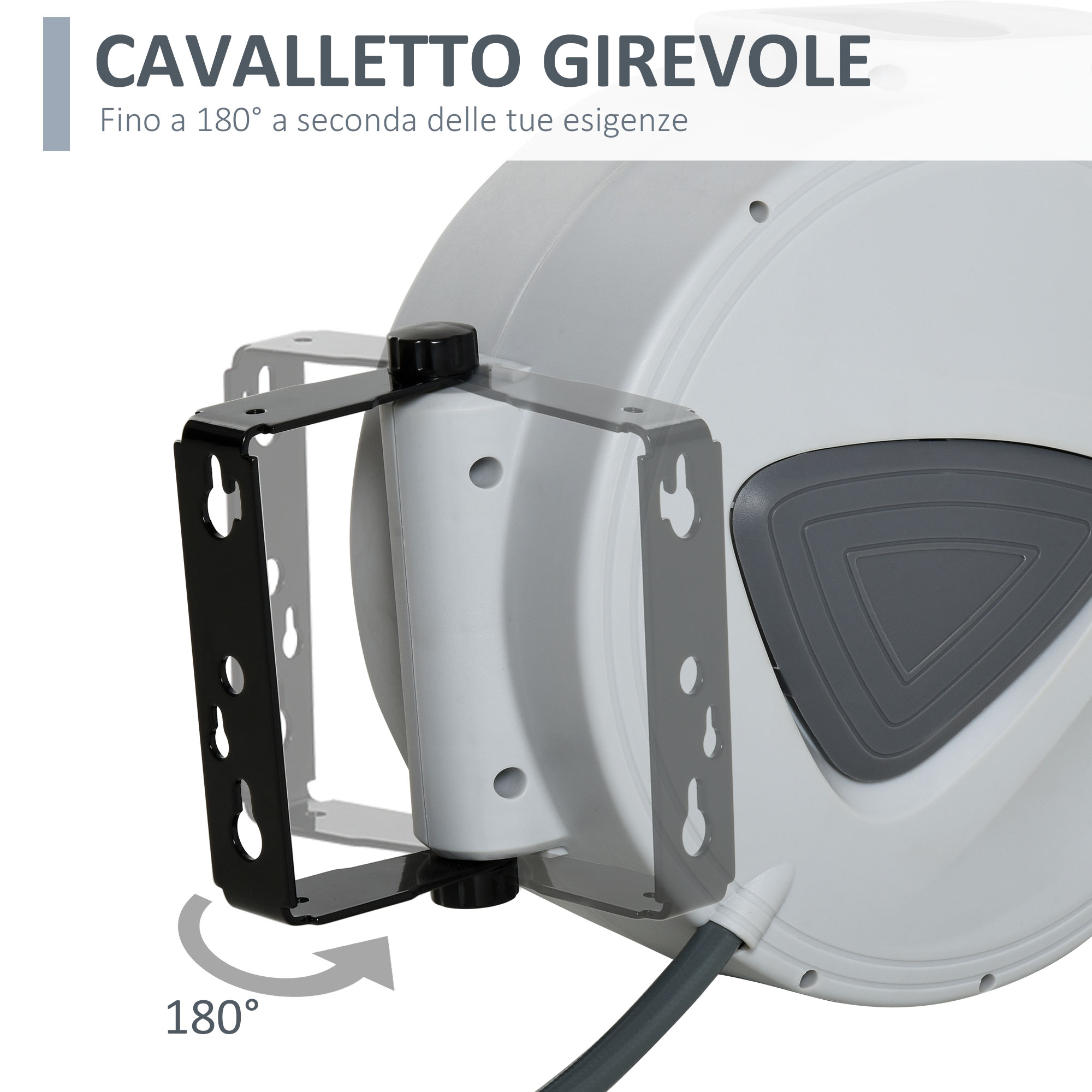 Con l’avvolgitubo automatico , i tubi flessibili in disordine sono solo un ricordo! L’avvolgitubo ti aiuta a evitare il rischio di inciampare e di causare incidenti in officina e in garage, protegge i tubi dell’aria compressa dall’usura e migliora la sicurezza sul lavoro. Con la funzione di avvolgimento, il tubo può essere retratto rapidamente dopo l’uso. Il supporto in metallo consente un facile montaggio a parete e una rotazione dell’avvolgitubo fino a 180° a seconda delle esigenze.Caratteristiche:• Ideale per officine, garage e cantieri• Compatibile con compressori e accessori per l’aria compressa• L’avvolgitubo automatico rende il lavoro più pratico e facile• Il tubo può essere bloccato in diverse lunghezze tirandolo• Il cavalletto per il montaggio a parete consente una rotazione fino a 180°• Dotato di maniglia per un facile trasporto• Uno strumento immancabile per aiutarti nei lavori quotidiani Dati tecnici:• Colore: Grigio• Materiale: plastica, PP• Dimensione generale: 29.2L x 16.2P x 28A cm• Lunghezza tubo di uscita: 10 m• Lunghezza tubo di entrata: 90 cm• Dimensioni del connettore: Ø1/4” (6.35 mm)• Dimensione del tubo flessibile: Ø3/8” (9.5 mm)• Pressione di lavoro: 8 bar• Pressione massima: 24 bar• Temperatura di lavoro: -5°C a 45°CContenuto della confezione:• 1 x Avvolgitubo• 1 x Manuale• Viti