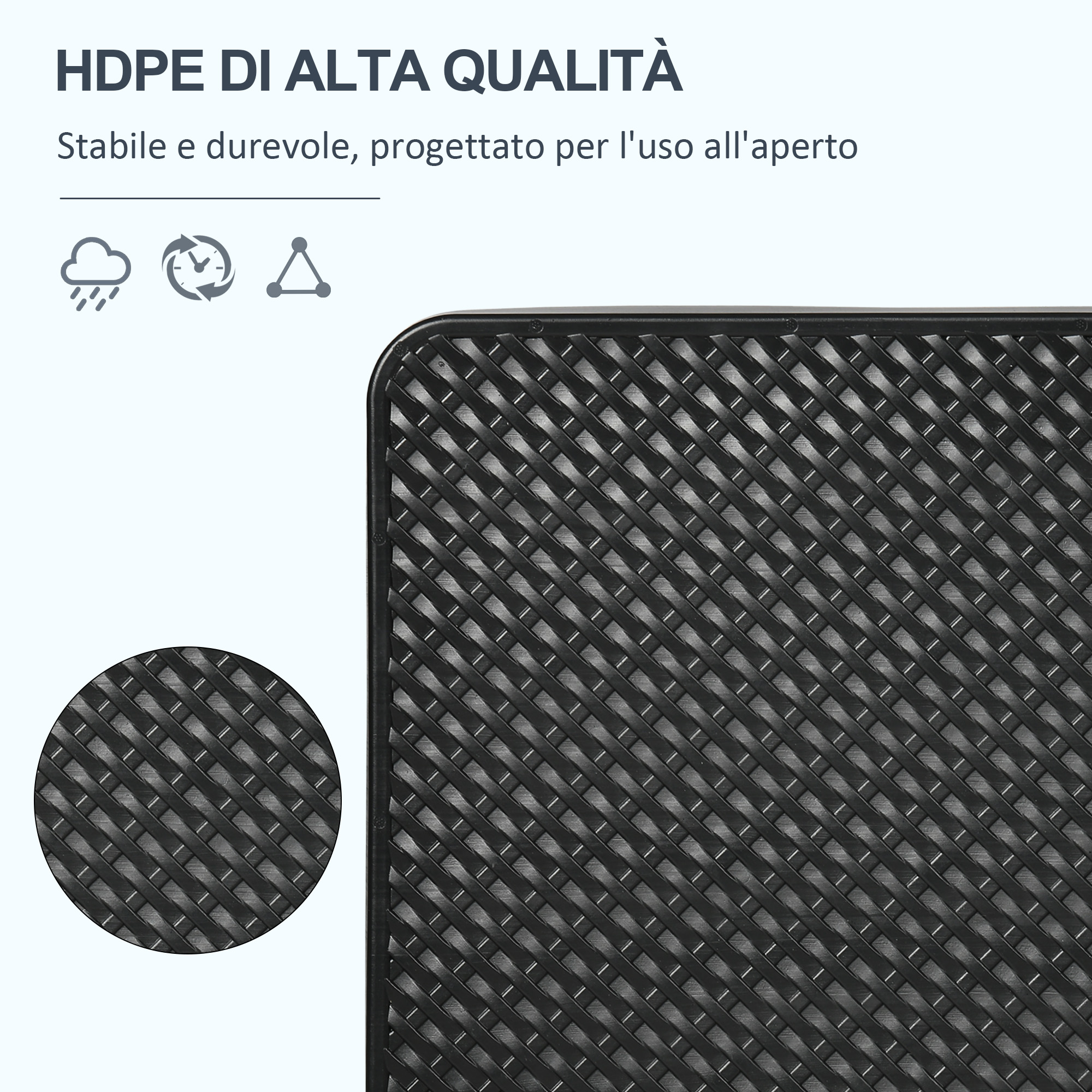 Assicurati che gli ombrelloni a braccio rimangano saldamente in posizione ogni giorno grazie alla nostra base per ombrellone . Ogni pezzo è realizzato in plastica HDPE, abbastanza resistente e durevole per l’uso all’aperto ed è dotato di una porta di riempimento e di un tappo a vite per poterlo riempire facilmente con acqua o sabbia. Quando sono vuoti, questi pesi per ombrelloni da giardino sono leggeri e comodi da portare in giro grazie alle maniglie integrate.Caratteristiche:• Struttura in robusta plastica HDPE• L’intero set pesa 52 kg se riempito d’acqua o 68 kg con sabbia• Porta di riempimento con tappo a vite• Ogni piatto possiede una maniglia integrata• Piastre impilabili quando non in uso• 4 accessori di fissaggio per fissare le piastre• Base a croce non inclusa Dati tecnici:• Colore: Nero• Materiale: HDPE• Dimensioni complessive: Ø100 x 8A cm• Dimensioni di ogni piatto: 40L x 40P x 8A cm• Dimensioni del tubo quadrato: 19L x 19L x 5A cm• Peso netto di ogni piatto: 1.6 kgContenuto della confezione:• 4 x Piastre per ombrellone• 4 x Accessori di montaggio• 1 x Manuale di istruzioni