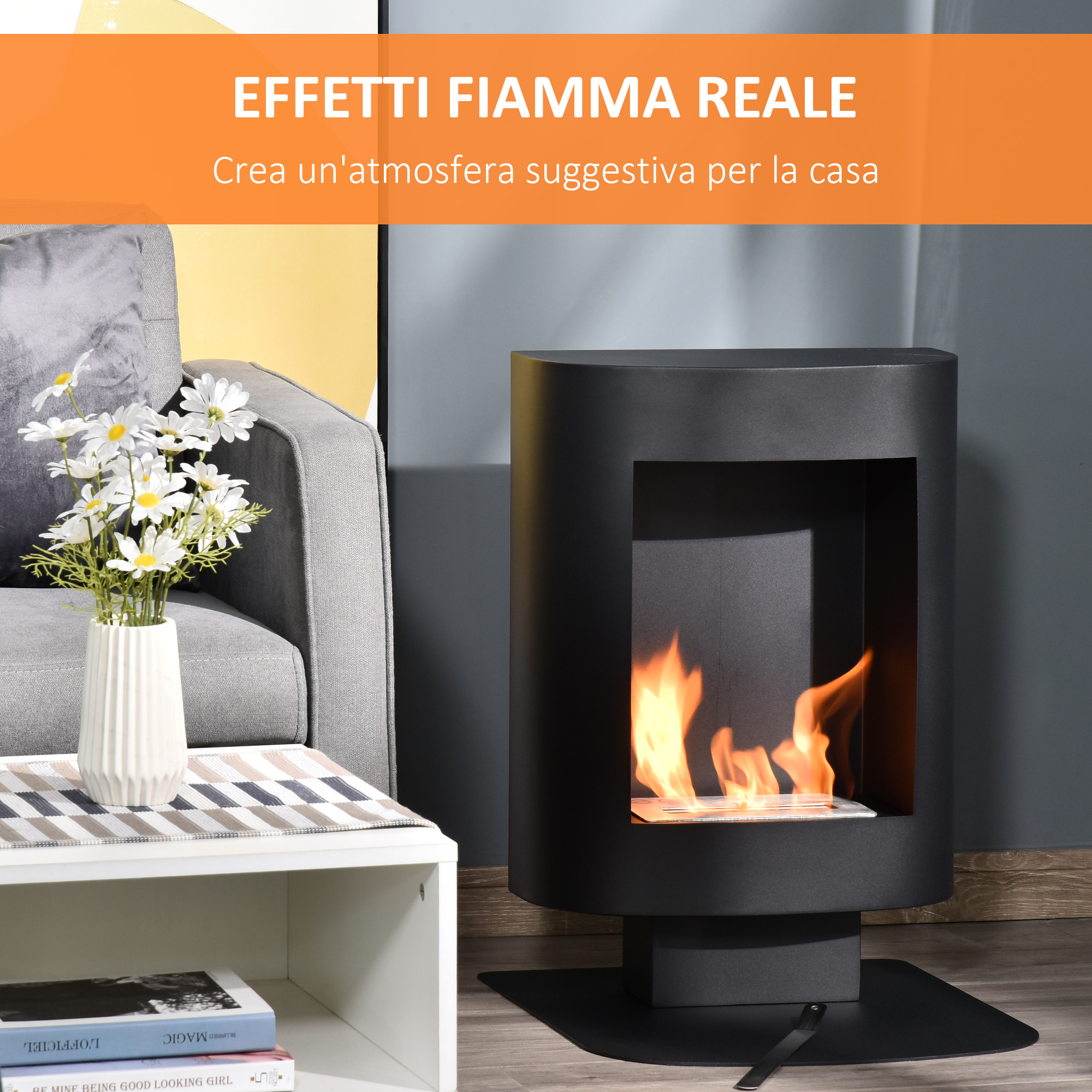 Camino a Bioetanolo con Serbatoio da 0.9L, Copertura fino 20?, 46.5x53x65cm, Nero