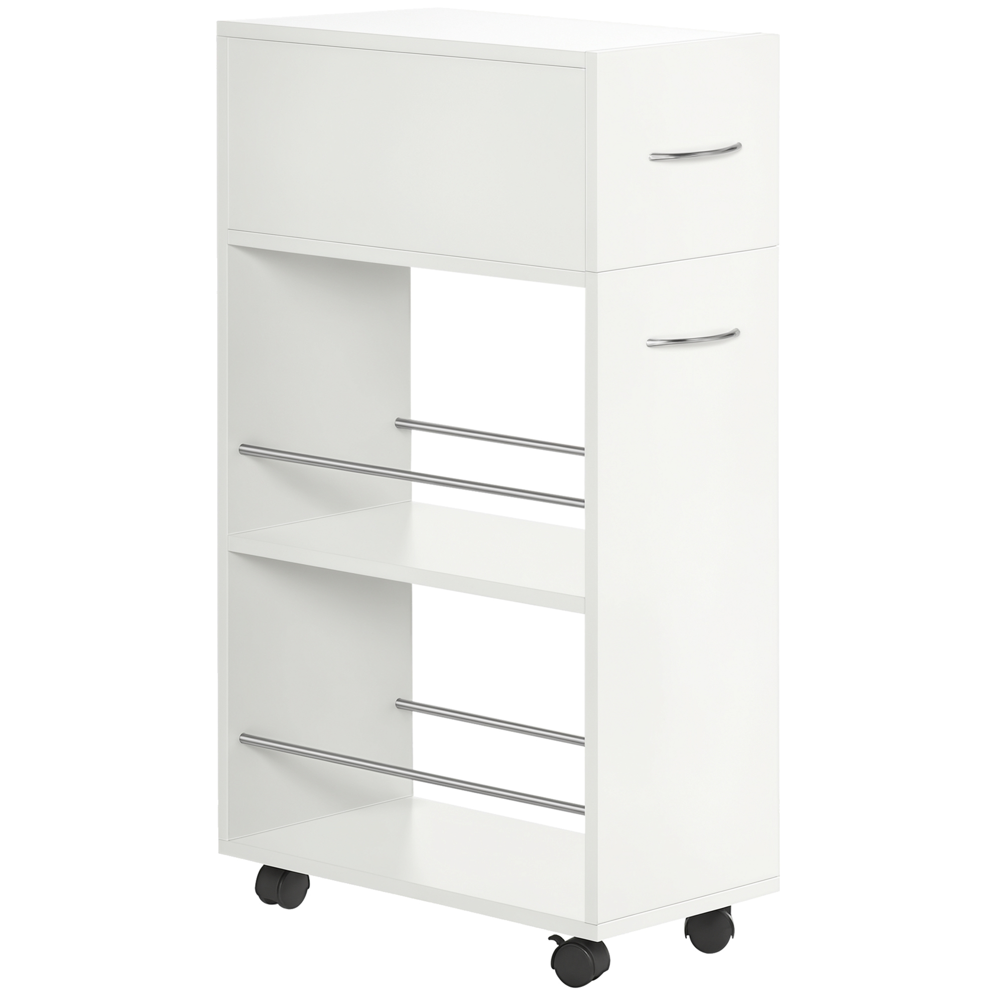 Carrello da Cucina in Truciolato e Acciaio Inox con 2 Ripiani Aperti, Cassetto Estraibile e Parapetti, 25x50x85 cm