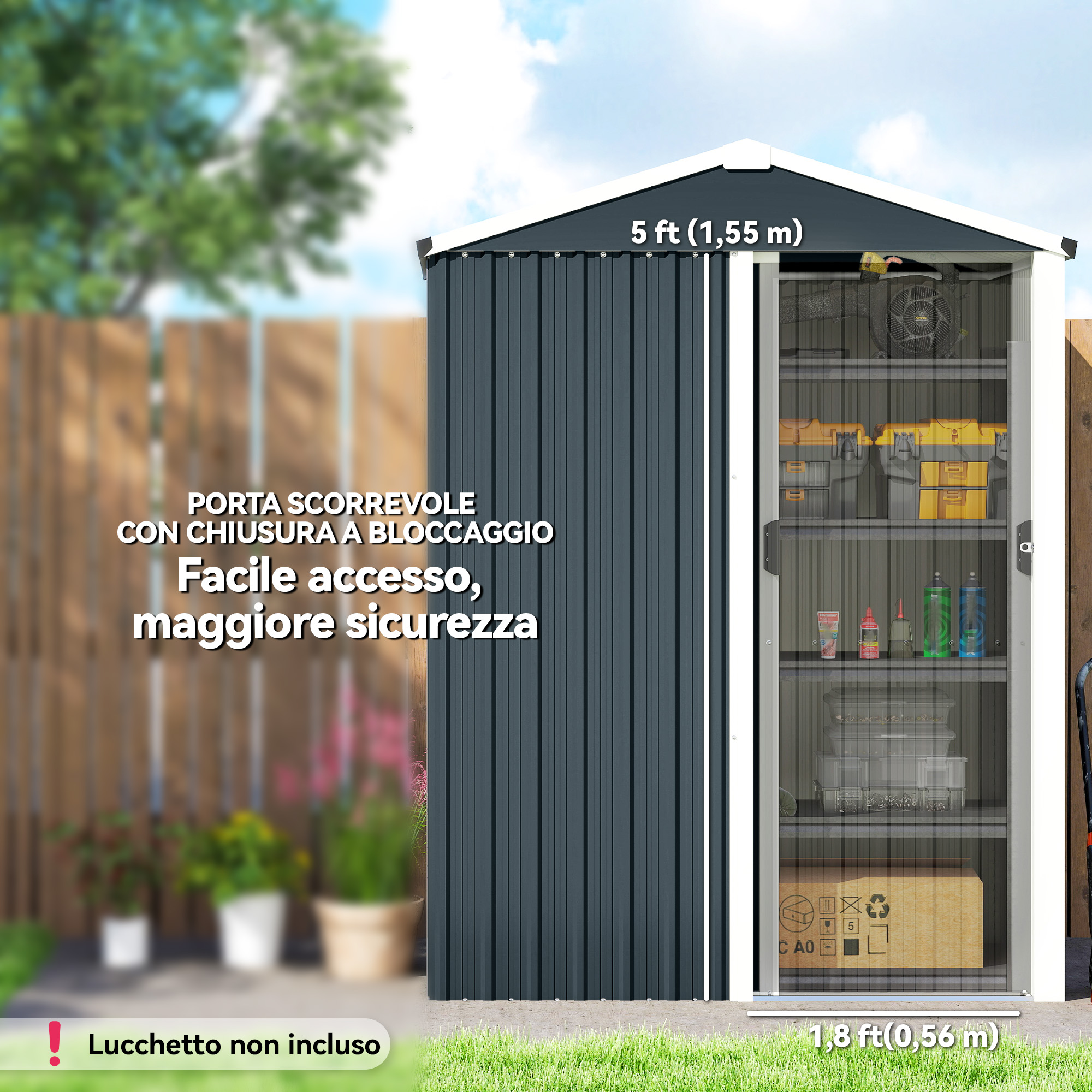 Stanco di casetta da giardino fragili? Il capanno da giardino in metallo offre protezione affidabile. Il tetto inclinato e la struttura in acciaio galvanizzato mantengono asciutti gli strumenti, mentre la porta scorrevole garantisce accesso facile allo spazio interno del capanno da giardino. Riordina il tuo spazio esterno ed elimina preoccupazioni di ruggine e danni causati dal maltempo.Caratteristiche:• Casetta da giardino in acciaio galvanizzato, offre protezione tutto l’anno• Una porta scorrevole bloccabile e salvaspazio garantisce un facile accesso allo spazio interno• Il design del tetto a doppia falda previene l’accumulo di pioggia, mantenendo tutti i tuoi oggetti asciutti• Il capanno da giardino offre ampio spazio di conservazione su una superficie ridotta, mantenendo il tuo spazio esterno in ordine• L’acciaio a bassa manutenzione resiste a marciume e ruggine• Si consiglia il montaggio da parte di 2–3 persone e richiede tipicamente circa 1–2 ore, i guanti da lavoro sono inclusi per proteggere le mani.Dati tecnici:• Colore: Verde• Materiale: Acciaio zincato• Dimensioni complessive: 136L x 87P x 179A cm• Dimensioni della base: 127L x 87P cm• Dimensioni interne: 120L x 74P cm• Dimensioni della porta: 56L x 155A cm• Capacità di carico della neve: 20 kg/m²Contenuto della confezione:• 1 x Capanno da giardino• 1 x Paio di guanti• 1 x Manuale