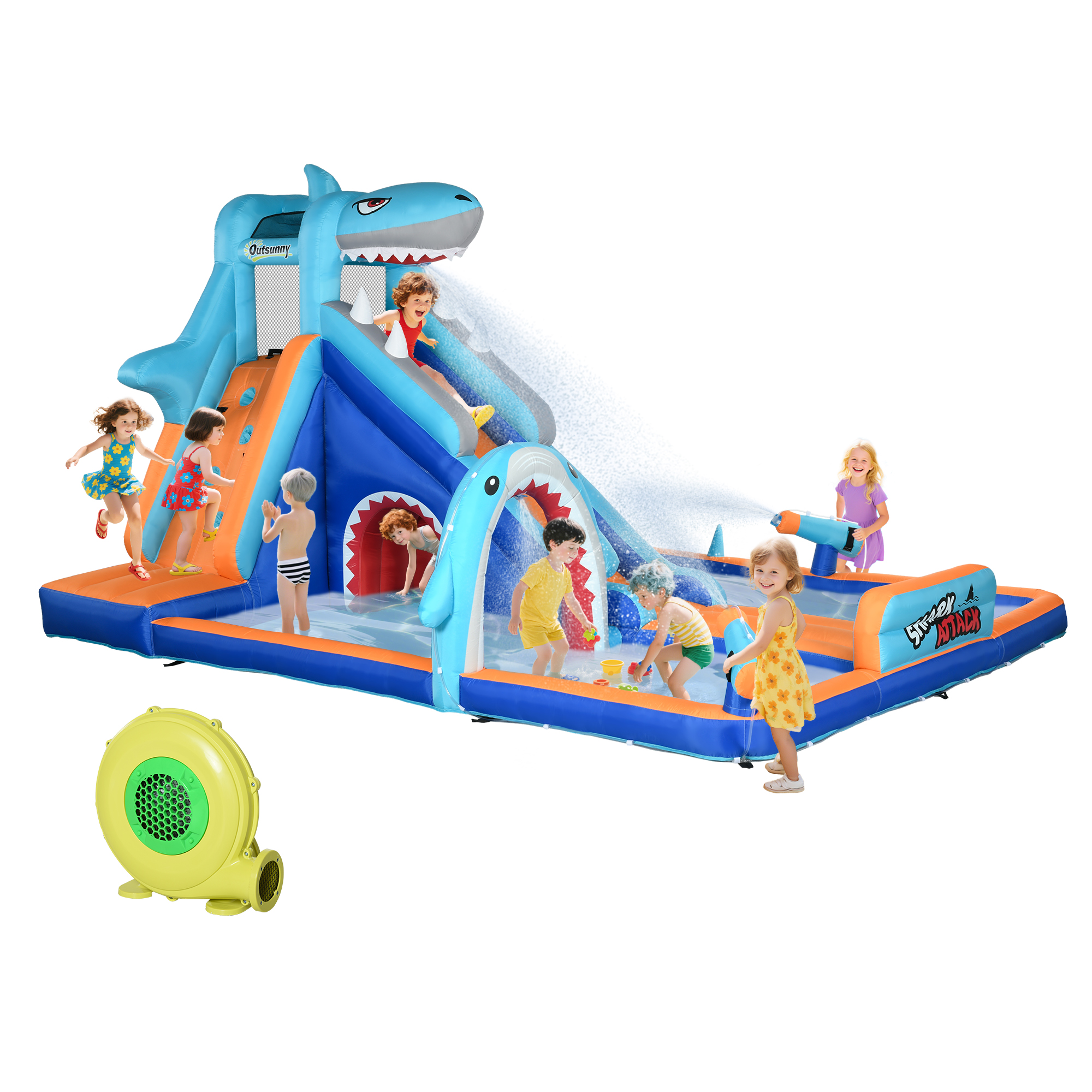 Crea il tuo parco divertimenti personale grazie al nostro castello gonfiabile dove i bambini possono fare così tante cose che potranno tranquillamente passare ore a divertirsi. Grande a sufficienza per ospitare 4 bambini alla volta, questo gioco gonfiabile per bambini è la soluzione ideale per rendere più interessanti le feste e i pomeriggi estivi. Il castello è inoltre fissato al terreno con dei picchetti che lo mantengono saldo a terra anche in caso di vento.Caratteristiche:• Castello gonfiabile con scivolo, piscina, parete da arrampicata, cannone ad acqua, porta da calcio e canestro da basket• Soffiatore d’aria incluso, la struttura si gonfia rapidamente• Gioco gonfiabile per 4 bambini alla volta• Paletti di fissaggio al terreno inclusi• Borsa da trasporto inclusa• Adatto per bambini dai 3 agli 8 anni• Montaggio richiestoDati tecnici:• Colore: Multicolore• Materiale: Tessuto Oxford 420D+840D• Dimensioni complessive: 590L x 460P x 220A cm• Dimensioni piscina: 555L x 425P cm• Dimensioni dello scivolo: 255L x 55P x 135A cm• Parete di arrampicata: 55L x 120A cm• Cannone ad acqua: 50L x 40A cm• Età consigliata: 3-8 anni• Capacità di peso: 120 kg• Potenza del soffiatore: 450 WContenuto della confezione:• 1 x Castello gonfiabile• 1 x Soffiatore d’aria• 1 x Borsa da trasporto• 1 x Manuale di istruzioni​​