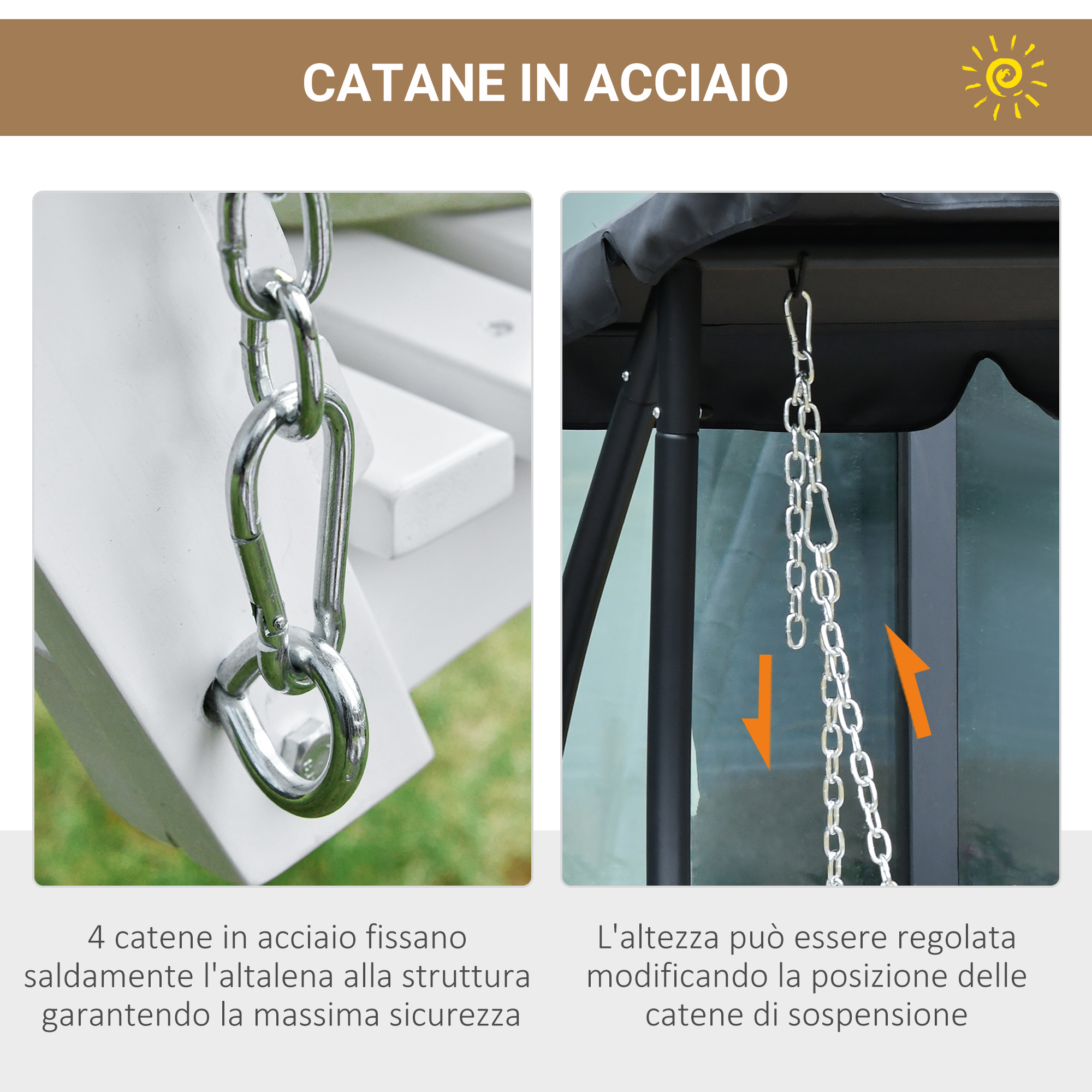 Il dondolo da giardino in rattan per 3 persone offre una fantastica comodità di seduta e di pulizia. Dotato di un tettuccio regolabile per una copertura d’ombra ottimale, il dondolo da esterno garantisce una protezione solare adeguata, oltre che un buon comfort e la giusta sicurezza. Trascorri il tuo tempo libero in compagnia utilizzando questo dondolo da 3 persone indipendente ed elegante per il tuo spazio esterno!Caratteristiche:• Dondolo da giardino con supporto incluso• Dondolo per 3 persone• Movimento fluido e delicato grazie alle pesanti molle•Tettuccio con angolo inclinabile per eliminare l’abbagliamento• Portabicchieri e vassoio inclusi• Struttura in acciaio e rattan PE intrecciato a mano• Montaggio richiestoDati tecnici:• Colore: Grigio• Materiale: Acciaio, poliestere, PE rattan• Dimensioni complessive: 204L x 112P x 150A cm• Dimensioni del tettuccio: 168L x 112P cm• Dimensioni della seduta: 132L x 48P cm• Altezza da terra: 45 cm• Dimensioni dello schienale: 132L x 52P cm• Capacità di peso: 320 kgContenuto della confezione:• 1 x Dondolo da giardino• 1 x Manuale di istruzioni​​