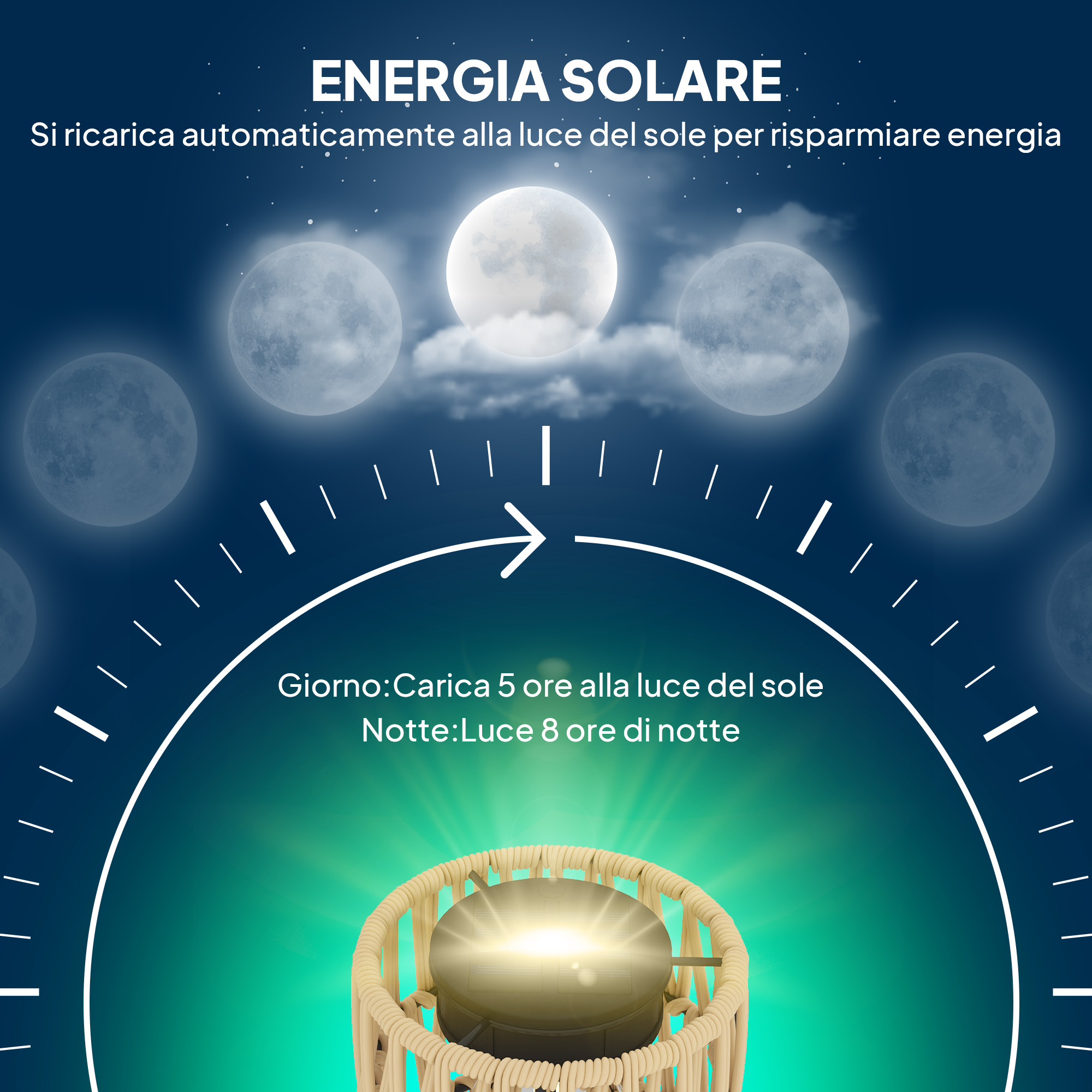 Recensisci per primo “Lampada da Esterno Solare in stile Boho con Base Quadrata, in Rattan PE e Acciaio, 45x45x178 cm, Nero e Giallo”