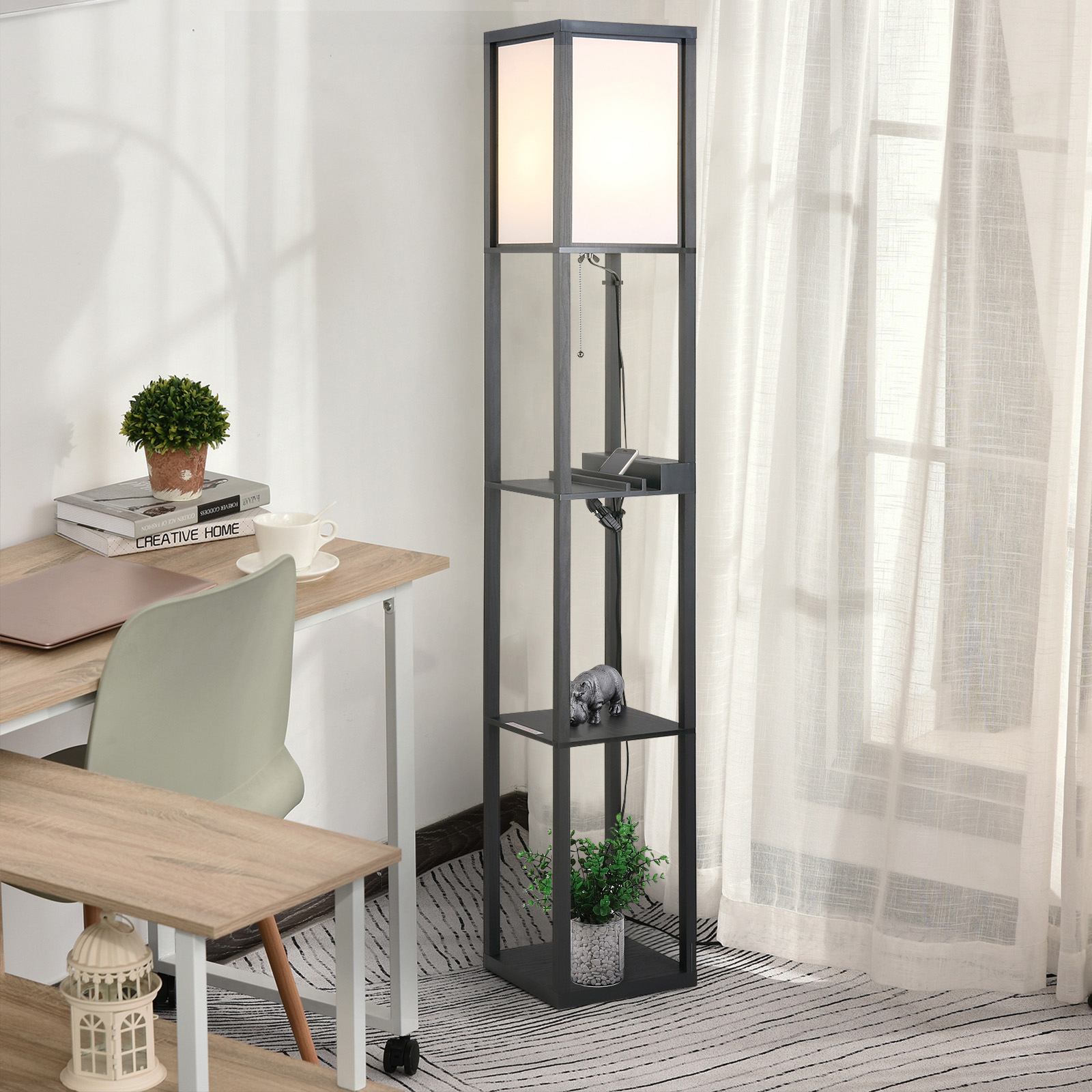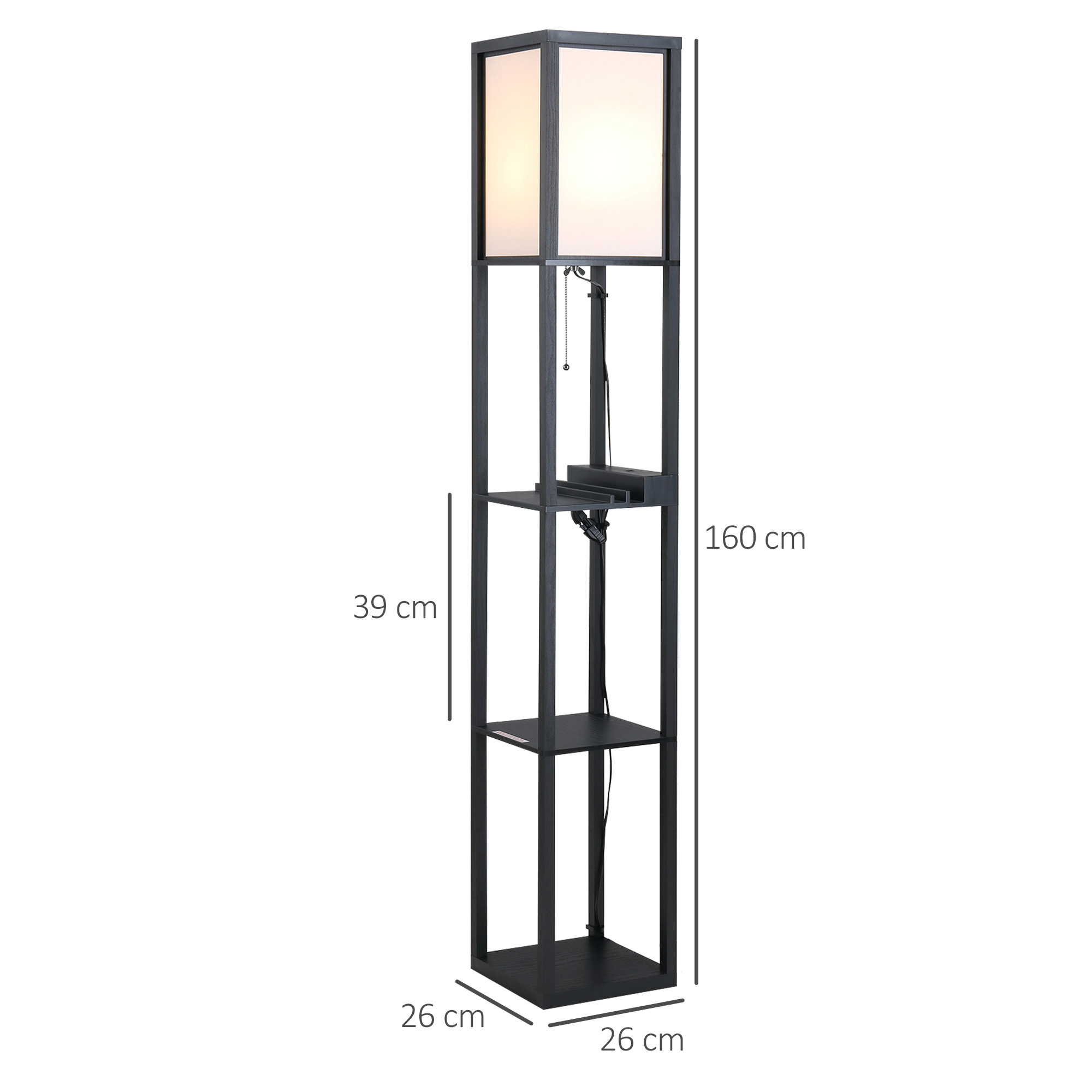 Hai bisogno di dare una nuova luce ai tuoi spazi? La lampada da terra è la soluzione giusta per te. È dotata di 3 mensole sotto alla lampadina, che ti permettono di posizionare soprammobili, libri e tanto altro. Il paralume rende l’illuminazione più tenue e confortevole, per creare una piacevole atmosfera durante i tuoi momenti di relax a casa. Questa lampada moderna porterà stile e originalità in ogni tuo ambiente.Caratteristiche:• Struttura robusta in MDF per una stabilità ottimale• Interruttore a pedale facile da usare• Lampada moderna con 3 mensole integrate per riporre piccoli oggetti• Paralume alto 39 cm che crea un’illuminazione tenue• Lampada da terra adatta per camera da letto, soggiorno e studio• Adatta per lampadine E27 con potenza massima 40W (lampadina non inclusa)• Montaggio richiesto Dati tecnici:• Colore: Rovere• Materiale: MDF, acrilico• Dimensioni generali: 26L x 26P x 160A cm• Dimensioni paralume: 24L x 24P x 39A cm• Dimensioni mensola: 26L x 26P x 39A cm (ognuna)• Attacco lampadina: E27 (lampadina non inclusa)• Potenza massima: 40W• Voltaggio: 230V-50Hz• Lunghezza cavo: 1.8 m• Certificazioni: CE-EMC, LVD and RoHSContenuto della confezione:• 1 x Lampada da terra• 1 x Manuale di montaggio