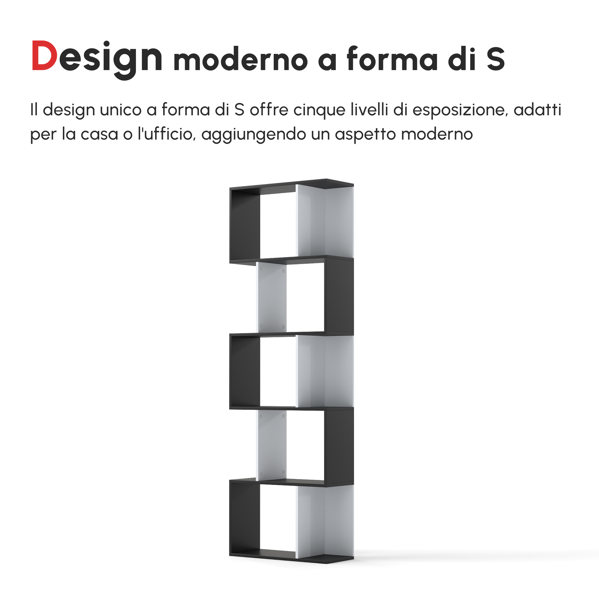 Recensisci per primo “Mobile Libreria in Legno a 5 Ripiani con Divisorio, 60x24x184.5 cm, Bianco e Nero”