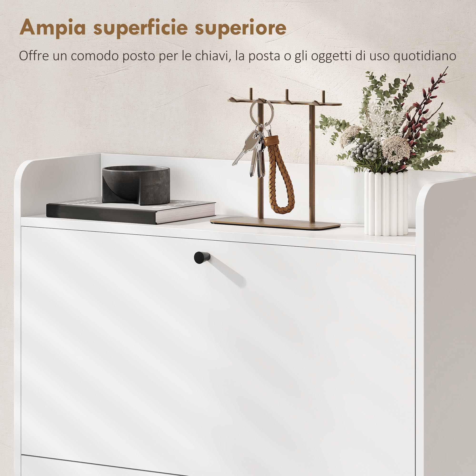 Recensisci per primo “Mobile Scarpiera Slim con 2 Cassetti a Ribalta e Ripiani Regolabili, in Legno e Metallo, 80x24x101 cm, Bianco”