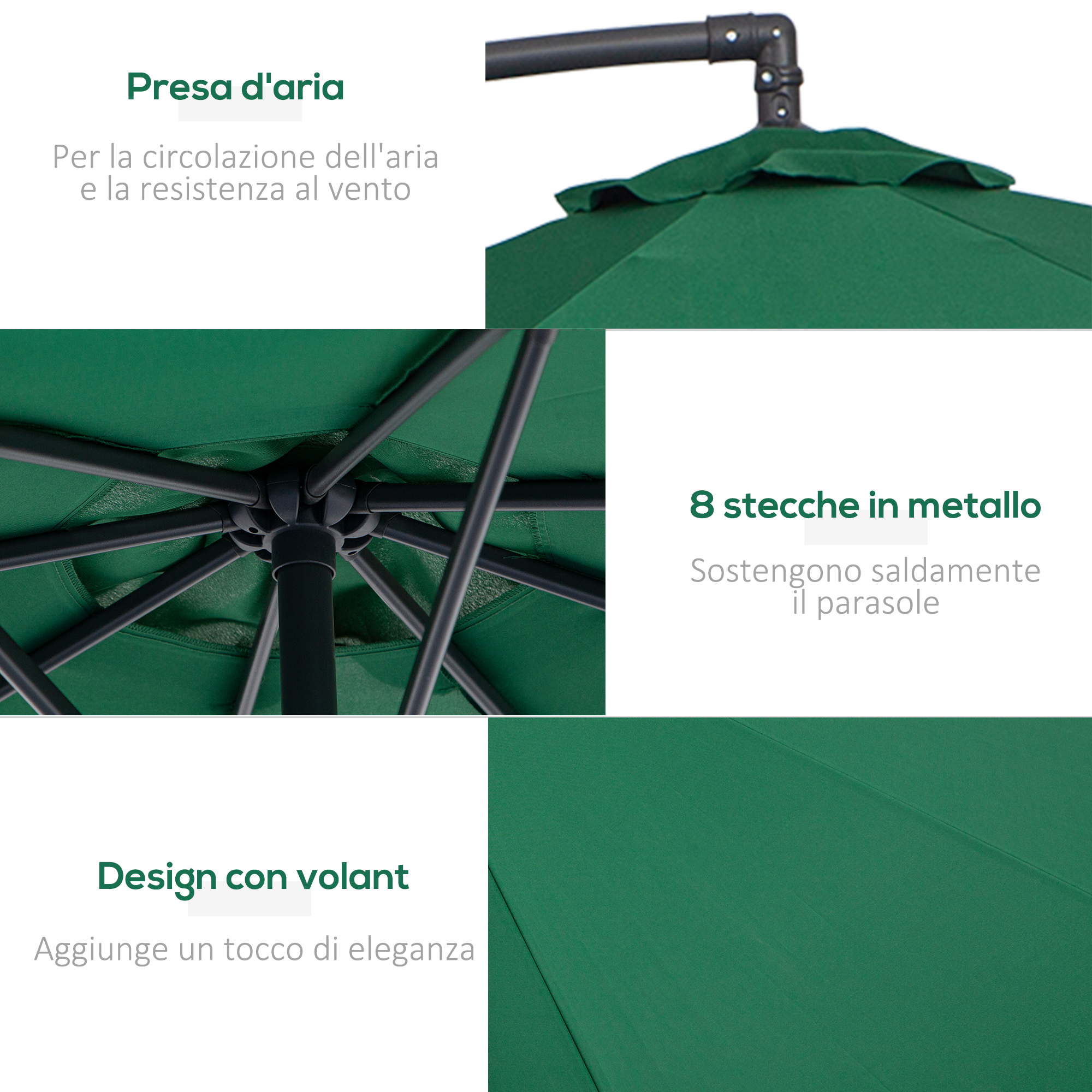 Scopri il nostro ombrellone per esterni , il supporto ideale per le tue gite all’aperto o per le tue attività esterne. Proteggiti efficacemente dal sole durante le tue giornate al mare, in giardino o mentre fai un picnic. Grazie al suo design raffinato e a una struttura funzionale, questo ombrellone da spiaggia è l’ideale per chi desidera un tocco di colore e stile per abbellire il proprio spazio esterno.Caratteristiche:• Ombrellone da spiaggia in stile hawaiano con materiali di qualità• Questo ombrellone per esterni sarà un’aggiunta sorprendente a ogni villa, giardino, cortile, piscina, piazza, ecc• Facile da montare• Supporto in metallo verniciato a polvere con testa dell’ombrellone pieghevole.Dati tecnici:• Colore: Verde, bianco• Materiale: Metallo, tessuto in poliestere• Dimensioni complessive: Ø1.8×2 mContenuto della confezione:• 1 x Ombrellone da spiaggia• 1 x Manuale di istruzioni
