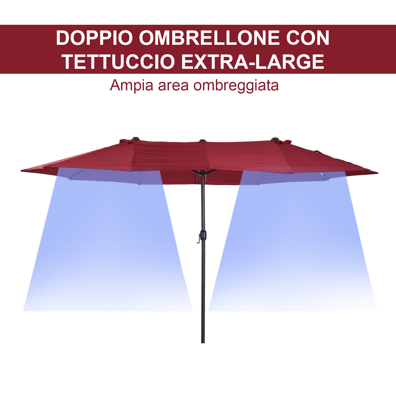Recensisci per primo “Ombrellone da Giardino Doppio con Apertura a Manovella, in Acciaio e Poliestere, 455x265x238cm, Rosso”
