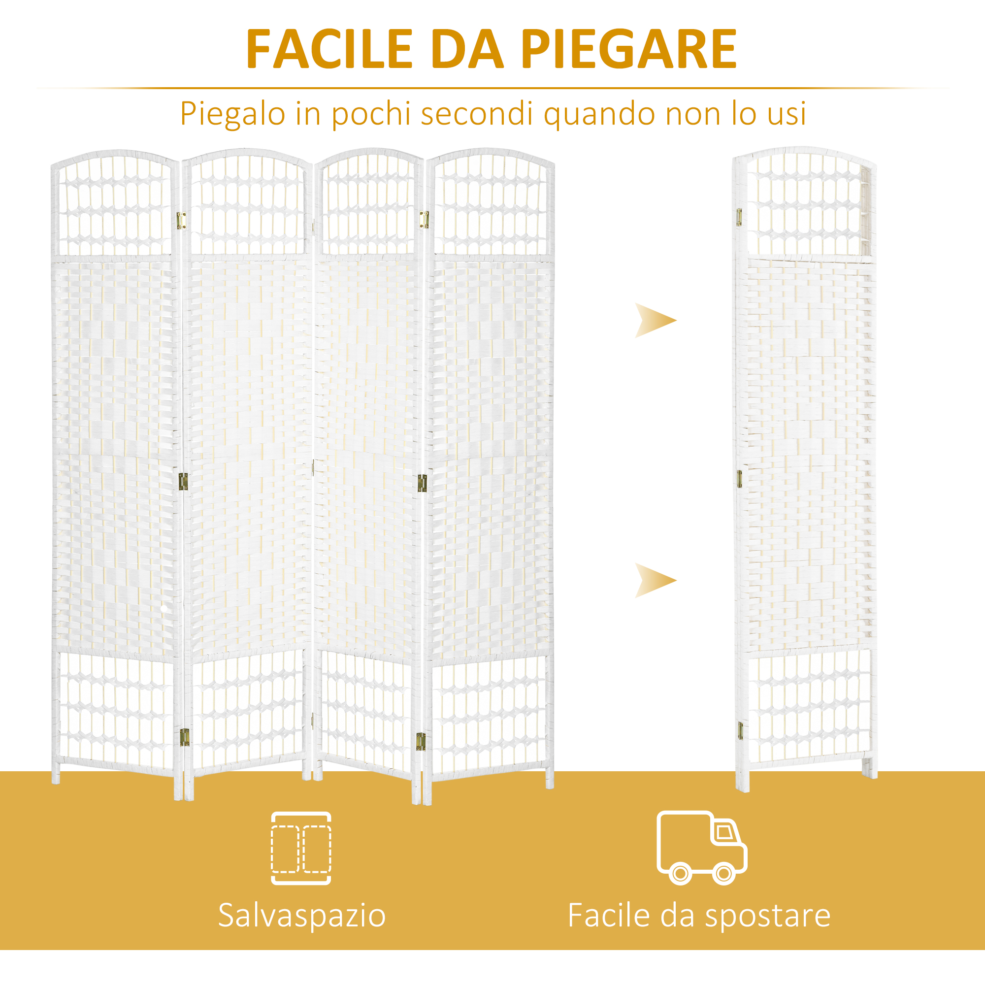 Recensisci per primo “Paravento a 4 Ante Pieghevole per Interni, Autoportante e Intrecciato, 160×170 cm, Bianco”