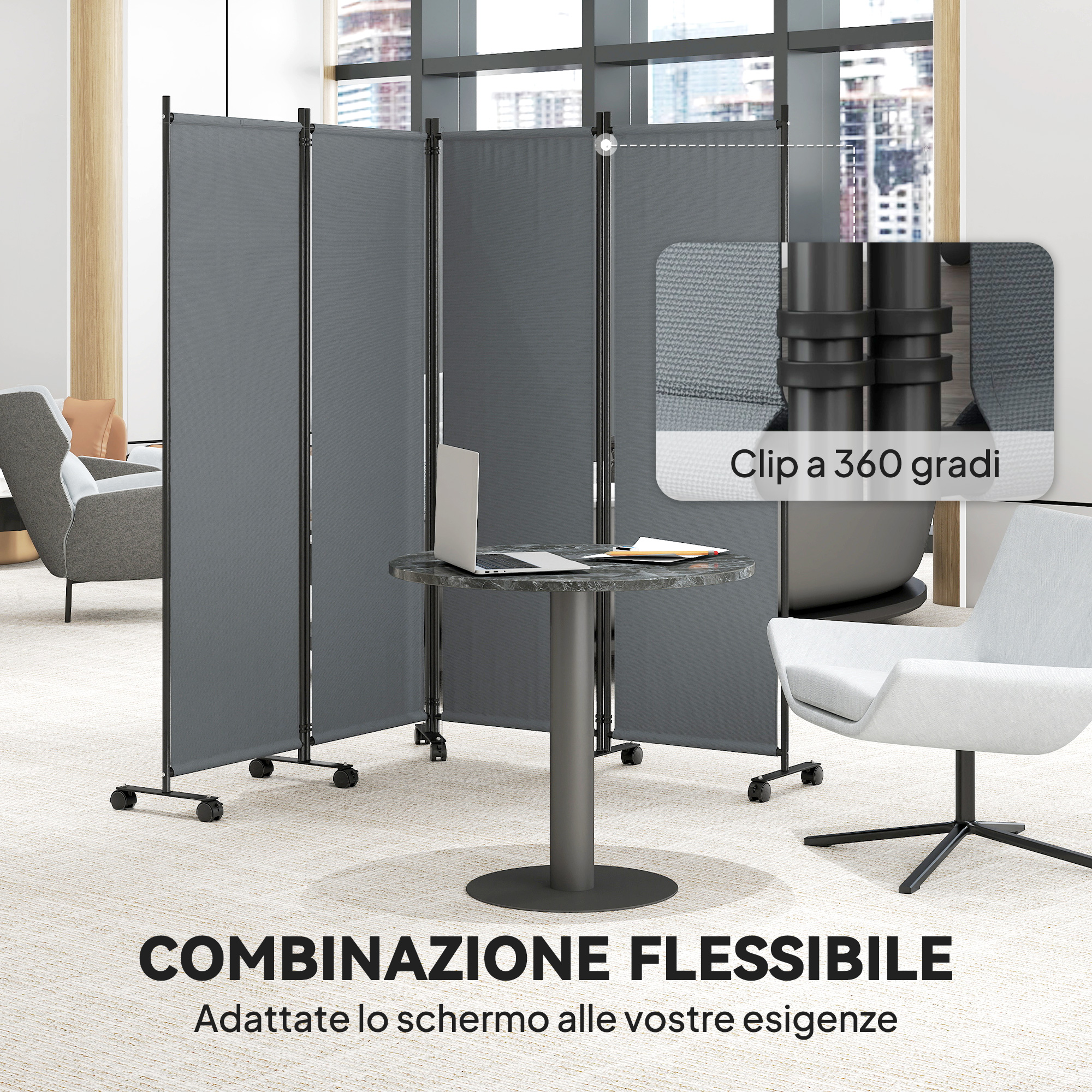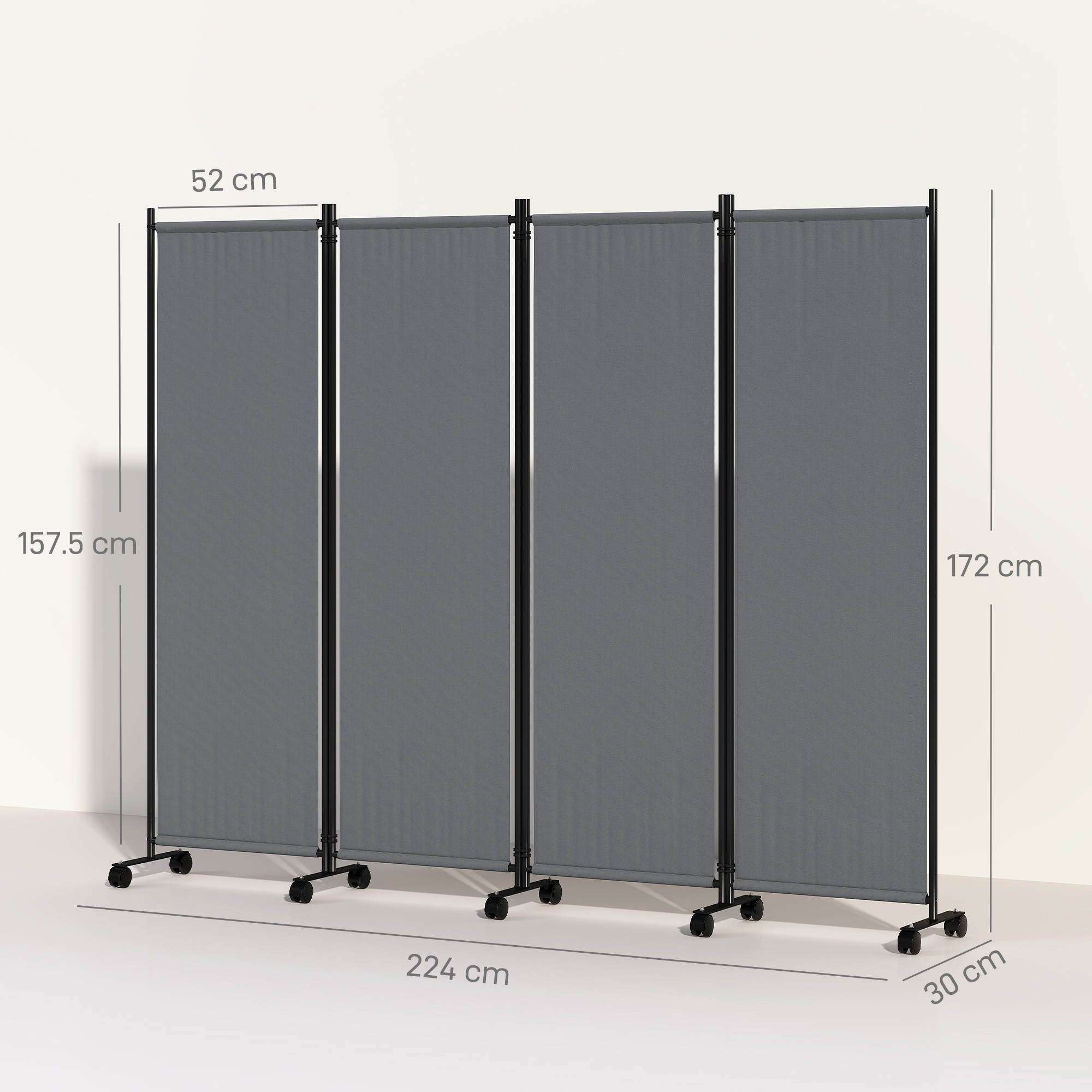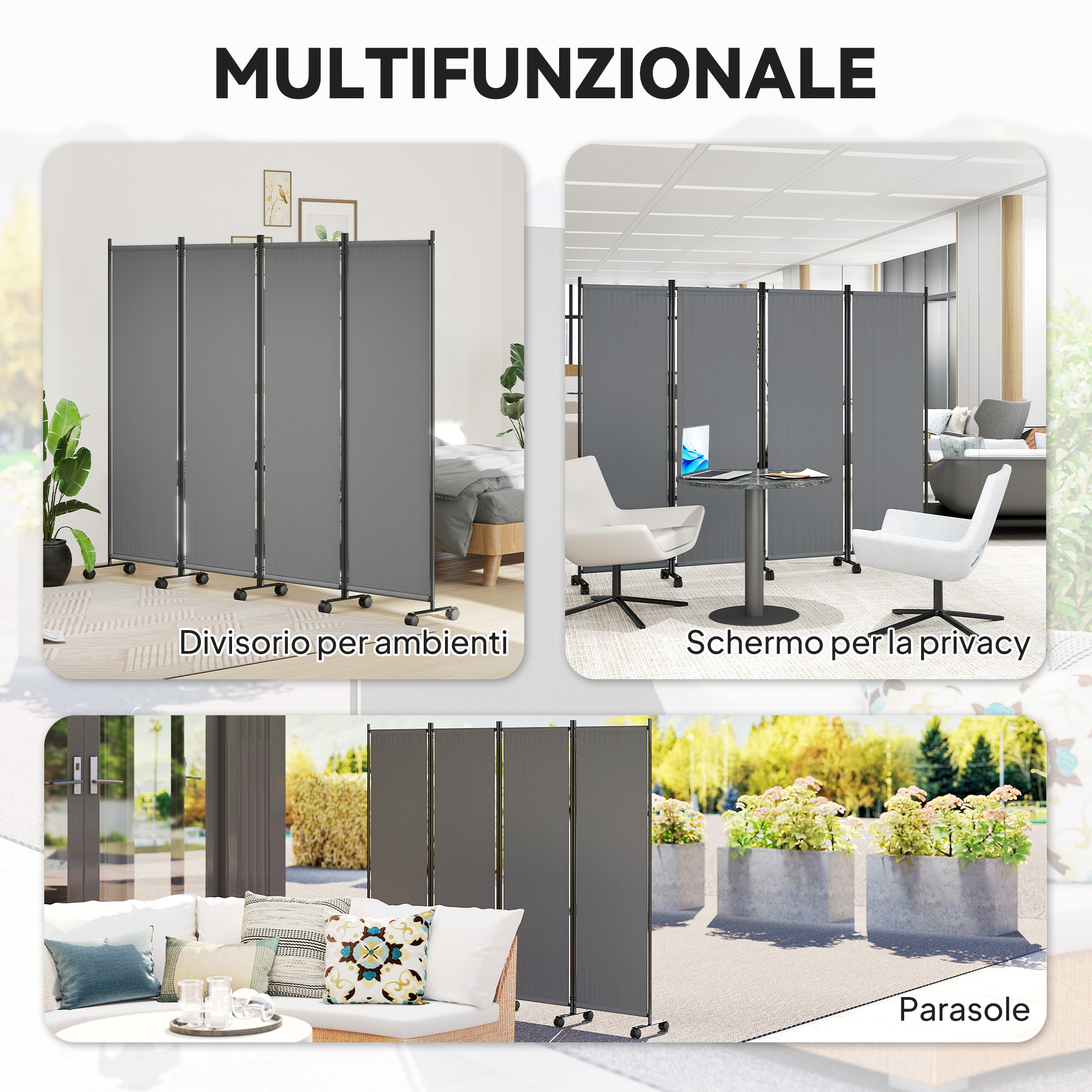 Paravento da Esterno e Interno a 4 Pannelli Pieghevole con Ruote, 221x50x172cm, Grigio Scuro