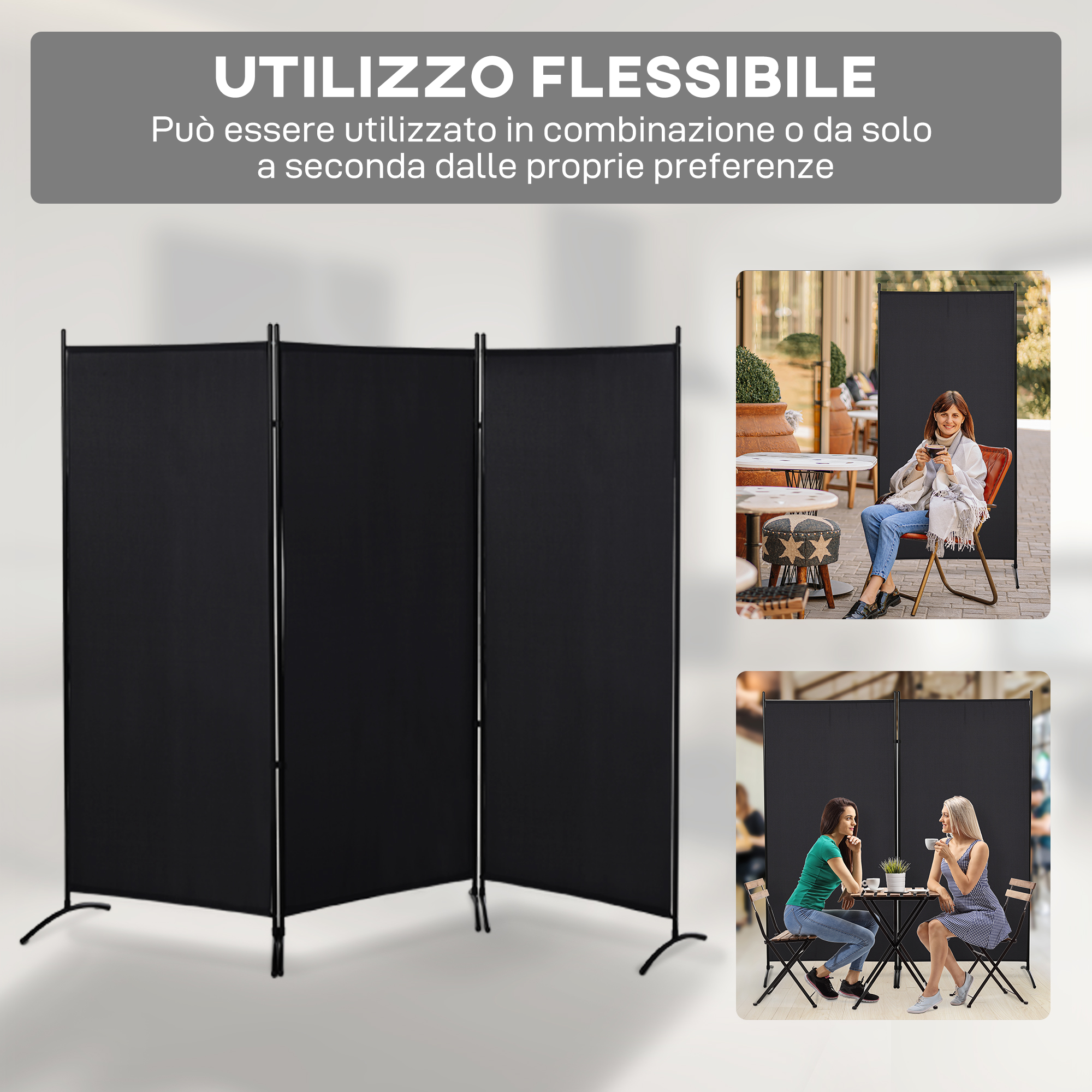 Paravento Separé da Interno a 3 Pannelli Pieghevole in Metallo e Poliestere, 253x50x182 cm, Nero