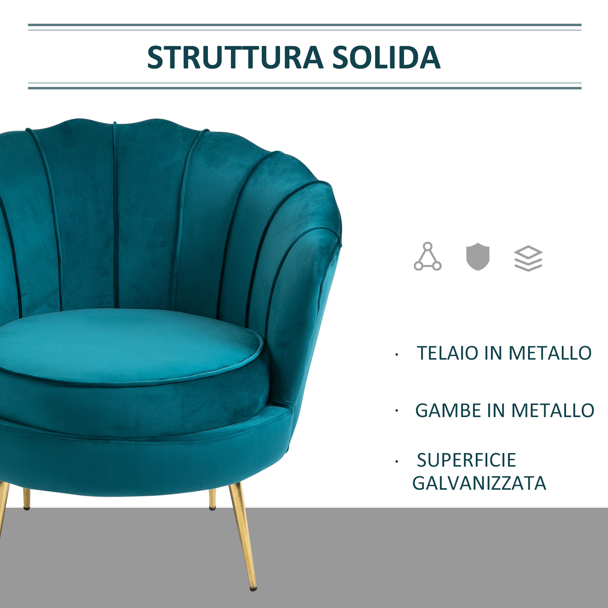 Recensisci per primo “Poltrona di Design Stile Vintage Imbottita in Velluto, 79x77x77cm, Verde Petrolio”