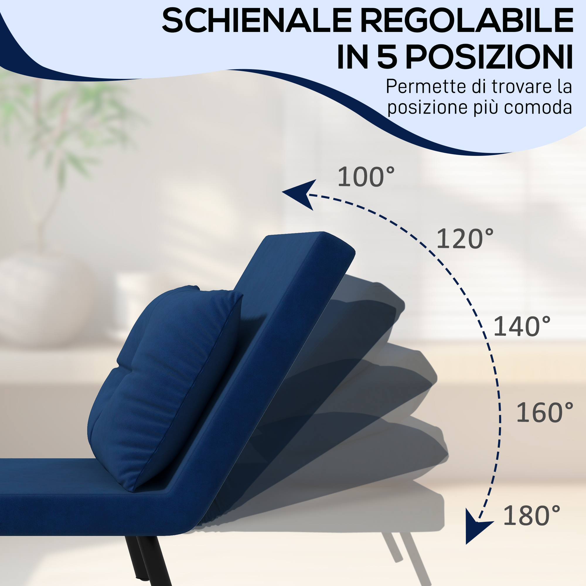 Passa in un batter d’occhio dalla posizione seduta a quella di riposo grazie a questa poltrona letto . Grazie alla struttura in acciaio, la nostra poltrona letto è solida e resistente, mentre lo schienale a 5 livelli ti consente di regolare la posizione più adatta alle tue esigenze. Riempita con una spessa imbottitura in spugna e avvolta in un tessuto vellutato dalla grande morbidezza, questa poltrona letto singolo è munita anche di cuscino per offrirti un maggiore comfort e sostegno.Caratteristiche:• Struttura utilizzabile come poltrona, chaise longue, poltrona da terra o letto• Divano letto con schienale regolabile su 5 livelli: 100°, 120°, 140°, 160°, 180°• Inclusi cuscini extra e seduta imbottita• Divano letto con struttura in acciaio e braccioli in legno inclusi• Montaggio richiesto Dati tecnici:• Colore: Grigio scuro• Materiale: Acciaio, spugna, tessuto effetto velluto (100% poliestere), legno• Dimensioni del divano: 63L x 73P x 81A cm• Dimensioni del letto: 183L x 63P x 26A cm• Dimensioni della seduta: 56L x 57P x 37A cm• Spessore della seduta: 20 cm• Dimensioni della superficie del letto: 183L x 60P x 9A cm• Dimensioni dello schienale: 48L x 58P x 9A cm• Dimensioni del cuscino: 61L x 40P x 11A cm• Dimensioni del bracciolo: 36L x 4A cm• Altezza del bracciolo rispetto alla seduta: 15 cm• Capacità di peso: 120 kgContenuto della confezione:• 1 x Poltrona letto• 1 x Cuscino• 1 x Manuale di istruzioni