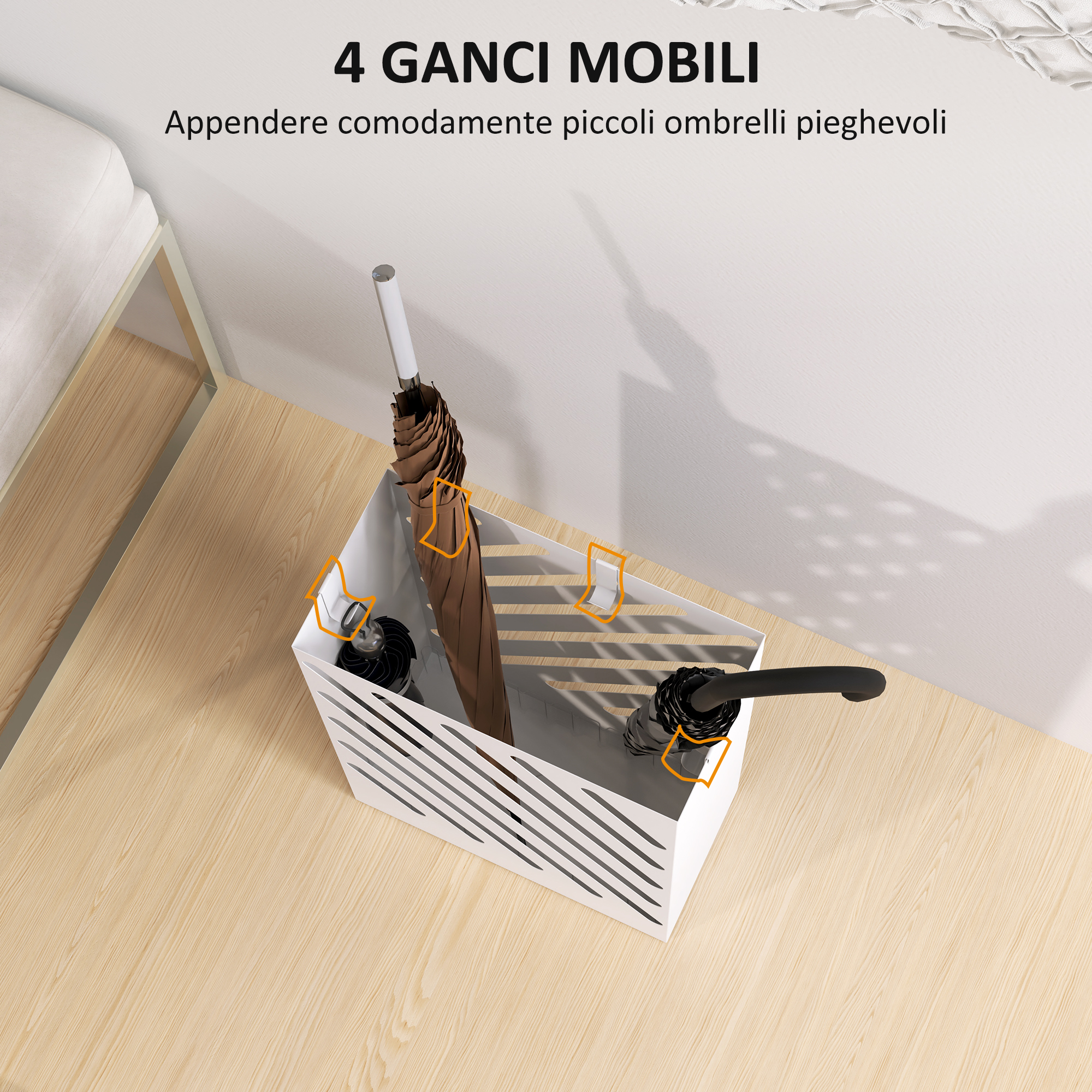 Portaombrelli di Design con Vaschetta Raccogli Gocce e 4 Ganci in Metallo, 28x14x41 cm, Bianco
