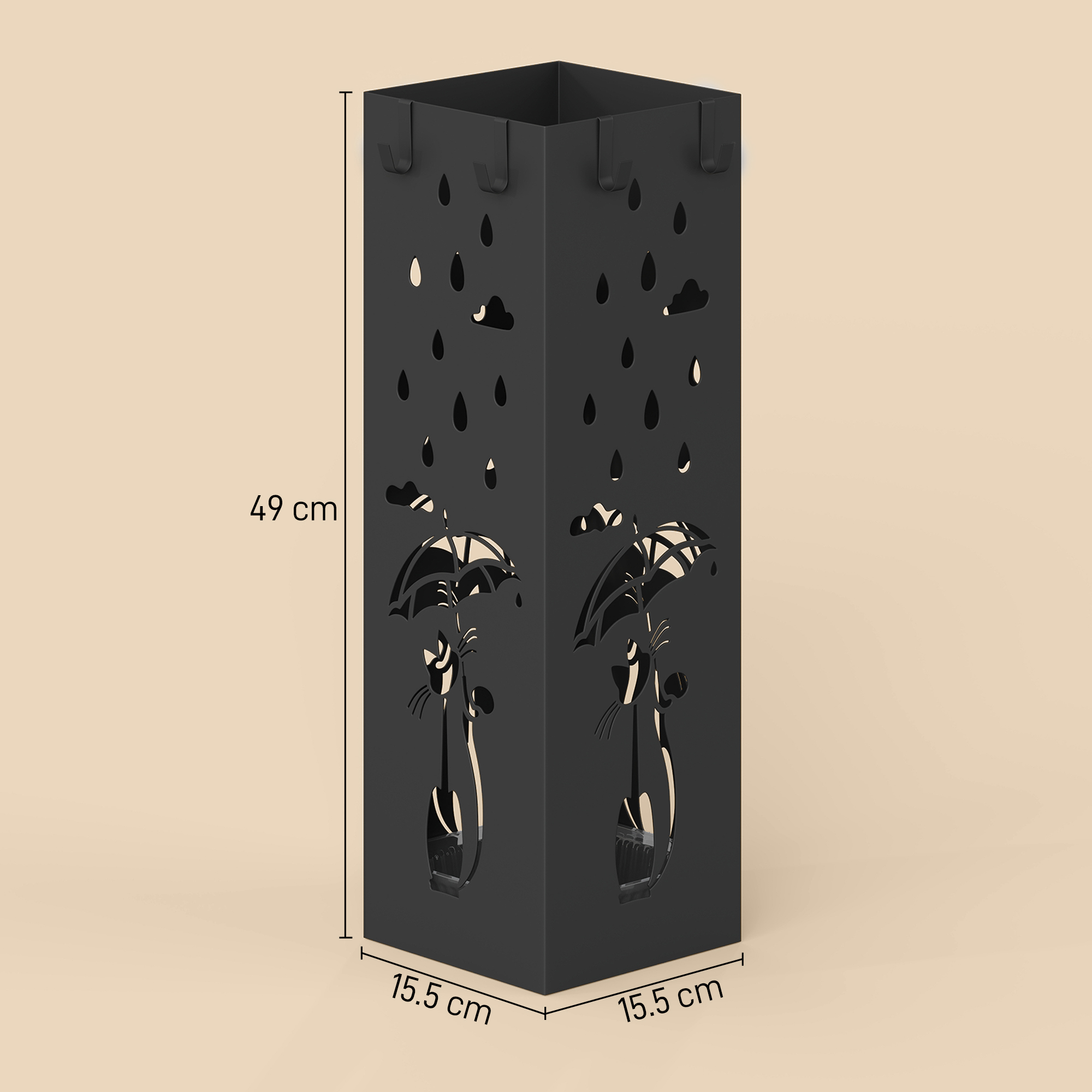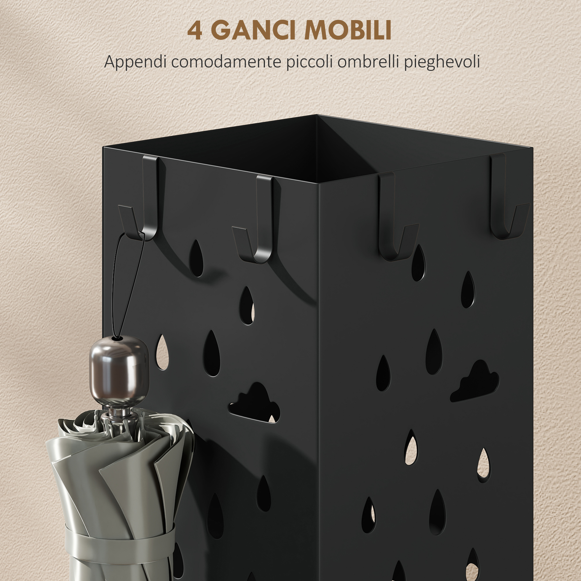 Portaombrelli Moderno con Raccogligocce e Ganci in Metallo, 15.5×15.5×49 cm, Nero