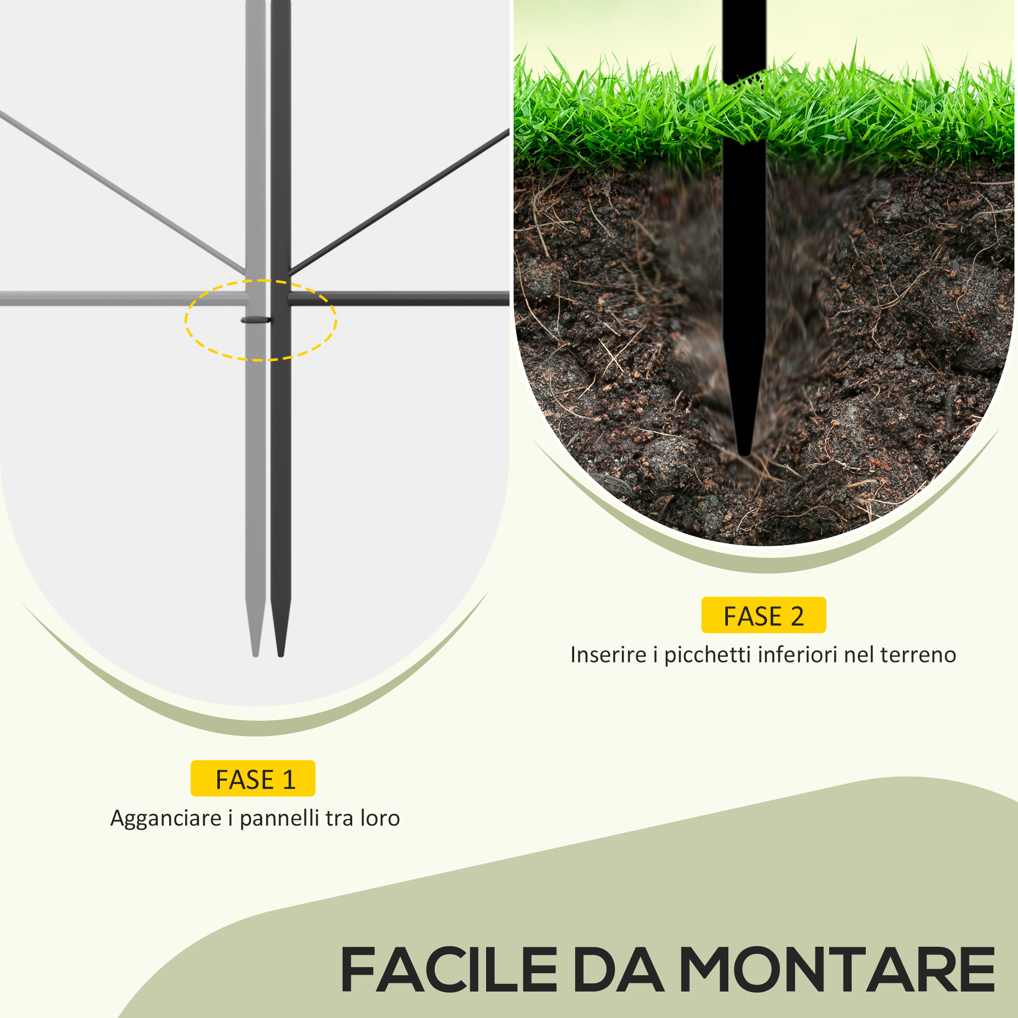 Se sei alla ricerca di una recinzione bella e funzionale per i tuoi spazi privati, la nostra recinzione esterna è la soluzione ideale per proteggere le aree aperte. La struttura è formata da linee ricurve e alcuni paletti da infilare nel terreno, rendendo il montaggio un gioco da ragazzi. Il design elegante con dettagli decorativi annessi aggiunge un tocco di stile a ogni terrazza, giardino o steccato.Caratteristiche:• Recinzione utilizzabile come cancello giardino, staccionata, divisorio di spazi o semplicemente come decorazione per lo spazio esterno• Recinzione esterna con telaio in metallo con rivestimento a polvere, indicato per l’uso all’aperto• Inserire i picchetti inferiori della recinzione per giardino nel terreno o nell’erba per un montaggio semplice e per garantire la giusta stabilità• L’angolo combinato delle due recinzioni per aiuole può essere regolato a piacimento• Facile da montareDati tecnici:• Colore: Nero• Materiale: Metallo• Dimensioni complessive: 305L x 79.5A cm• Dimensioni di ogni pannello: 62L x 79.5A cmContenuto della confezione:• 5 x Recinzione esterna a 5 pannelli• 1 x Manuale di montaggio