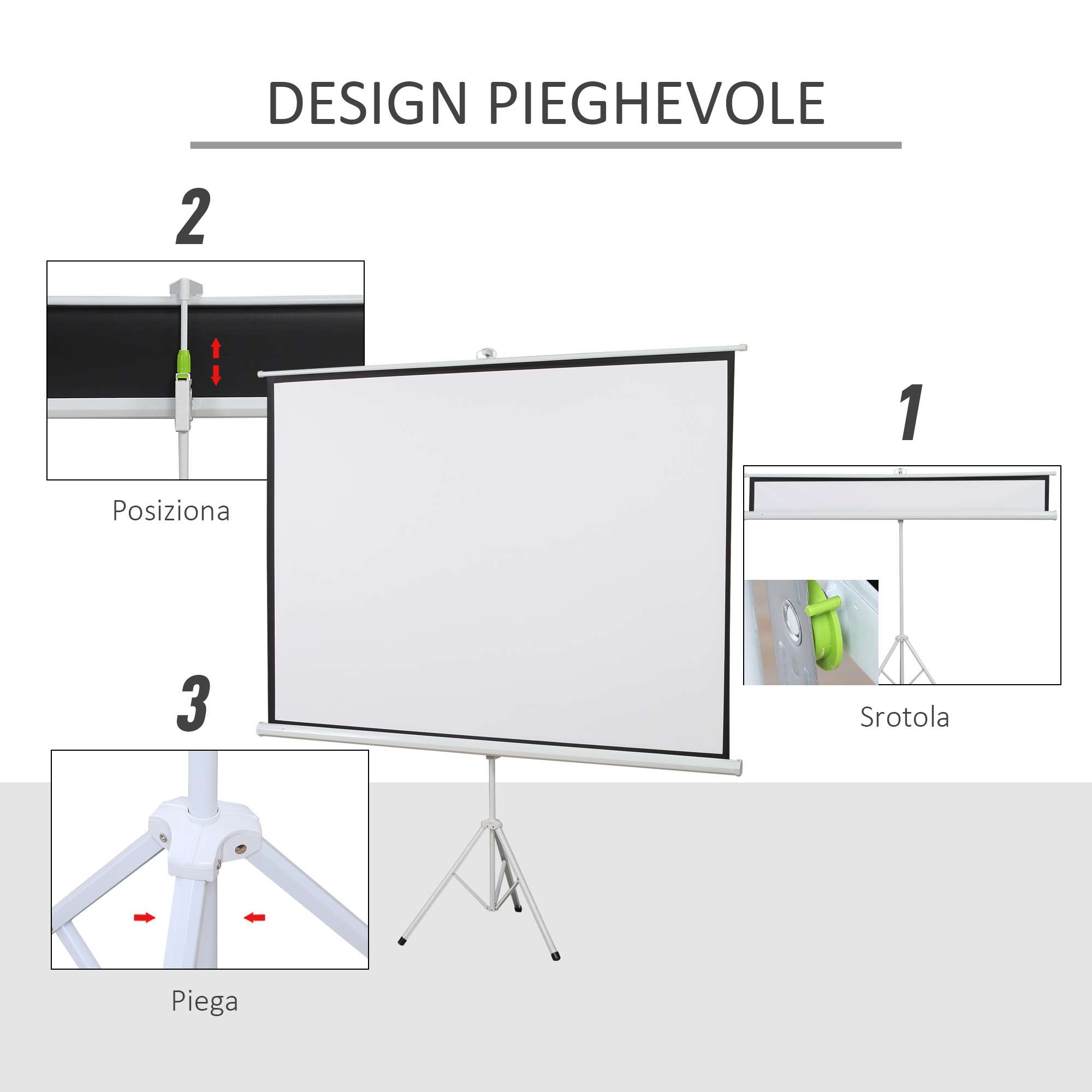 Grazie a questo telo proiettore con supporto regolabile, potrai trasformare i tuoi spazi in un cinema su misura per le tue serate. Questa struttura portatile è realizzato in materiale di alta qualità che non si deforma facilmente, in modo da farti guardare i tuoi film preferiti ogni volta che vuoi. Lo schermo da 120 pollici può essere utilizzato per diversi scopi, dalle serate di cinema all’aperto in compagnia fino alle presentazioni in ufficio.Caratteristiche:• Schermo di proiezione da 120 pollici con supporto regolabile, formato 4:3 e ampio angolo di visione• Telo per proiettore realizzato in materiale plastico di alta qualità, difficile da deformare• Il telo per proiettore può essere piegato e trasportato facilmente quando non è in uso• Schermo per proiettore realizzato con una struttura in metallo per un supporto robusto e stabile• Montaggio richiesto Dati tecnici:• Colore: Bianco• Materiale: Plastica e metallo• Dimensioni complessive: 244L x 190A cm• Dimensioni dello schermo: 238L x 178A cm• Rapporto d’aspetto: 4:3• Larghezza del bordo nero: 3 cmContenuto della confezione:• 1 x Telo proiettore• 1 x Manuale di istruzioni