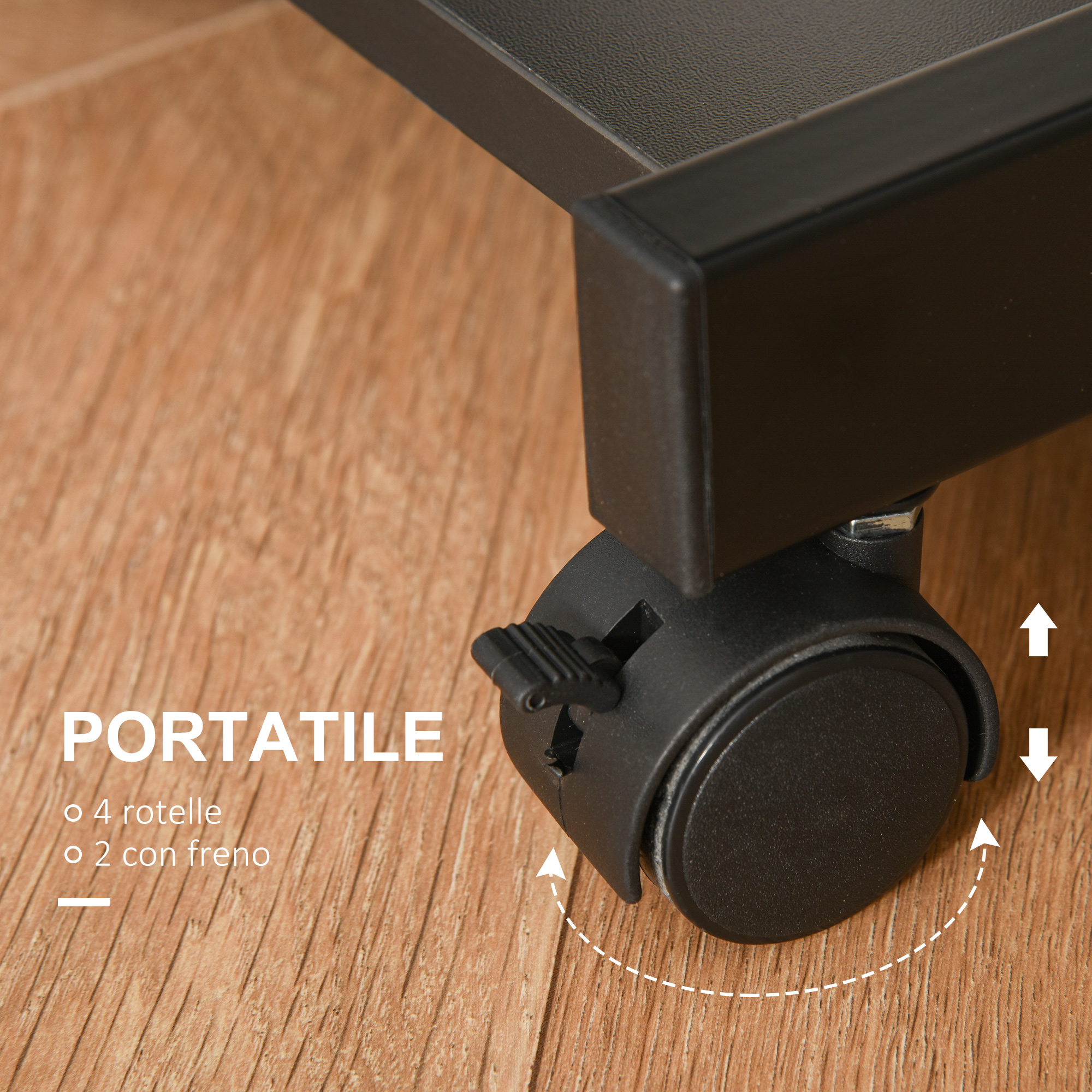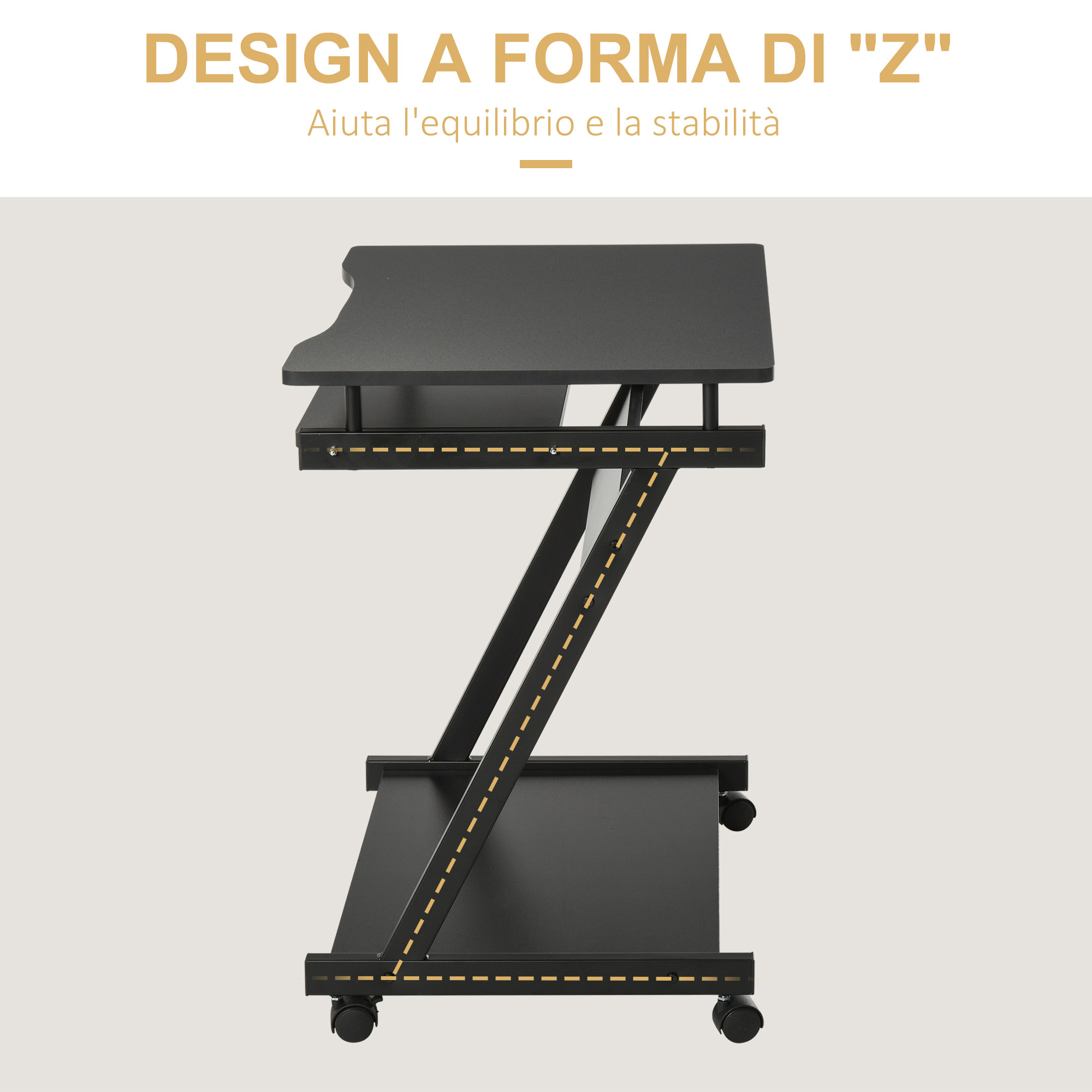 Scrivania Salvaspazio con Piano Tastiera a Scomparsa, 4 Ruote e Ripiano Inferiore, 60x48x73 cm, Nero