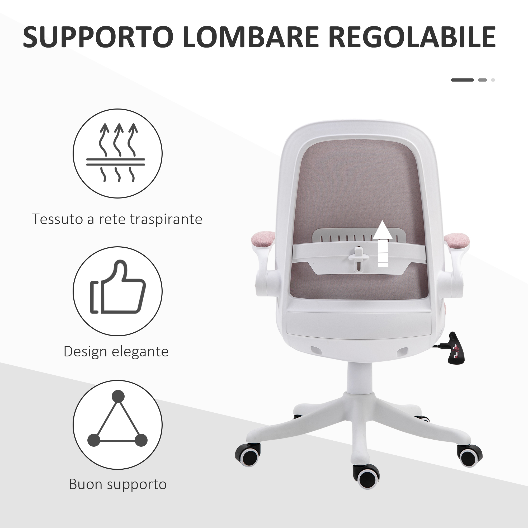Sedia da Ufficio Ergonomica ad Altezza Regolabile, in Tessuto Effetto Velluto, 62.5x60x94-104 cm, Bianco e Rosa