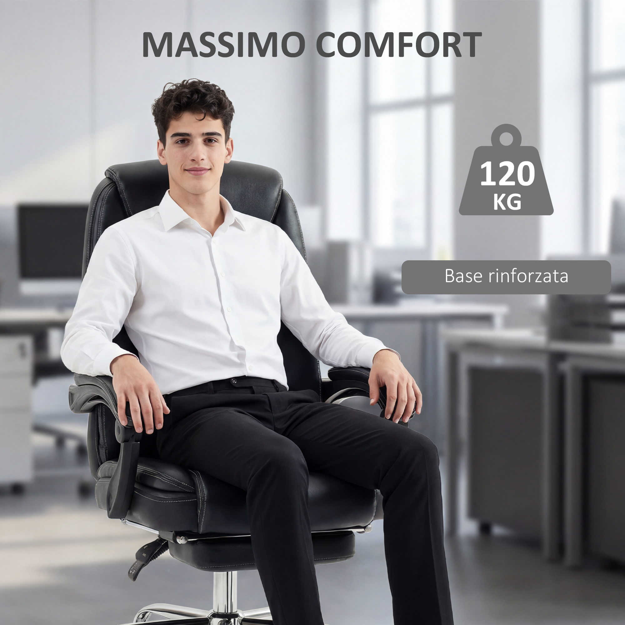Sedia da Ufficio Reclinabile con Poggiapiedi Estraibile in Pelle PU, Capacità 120 kg, Nero