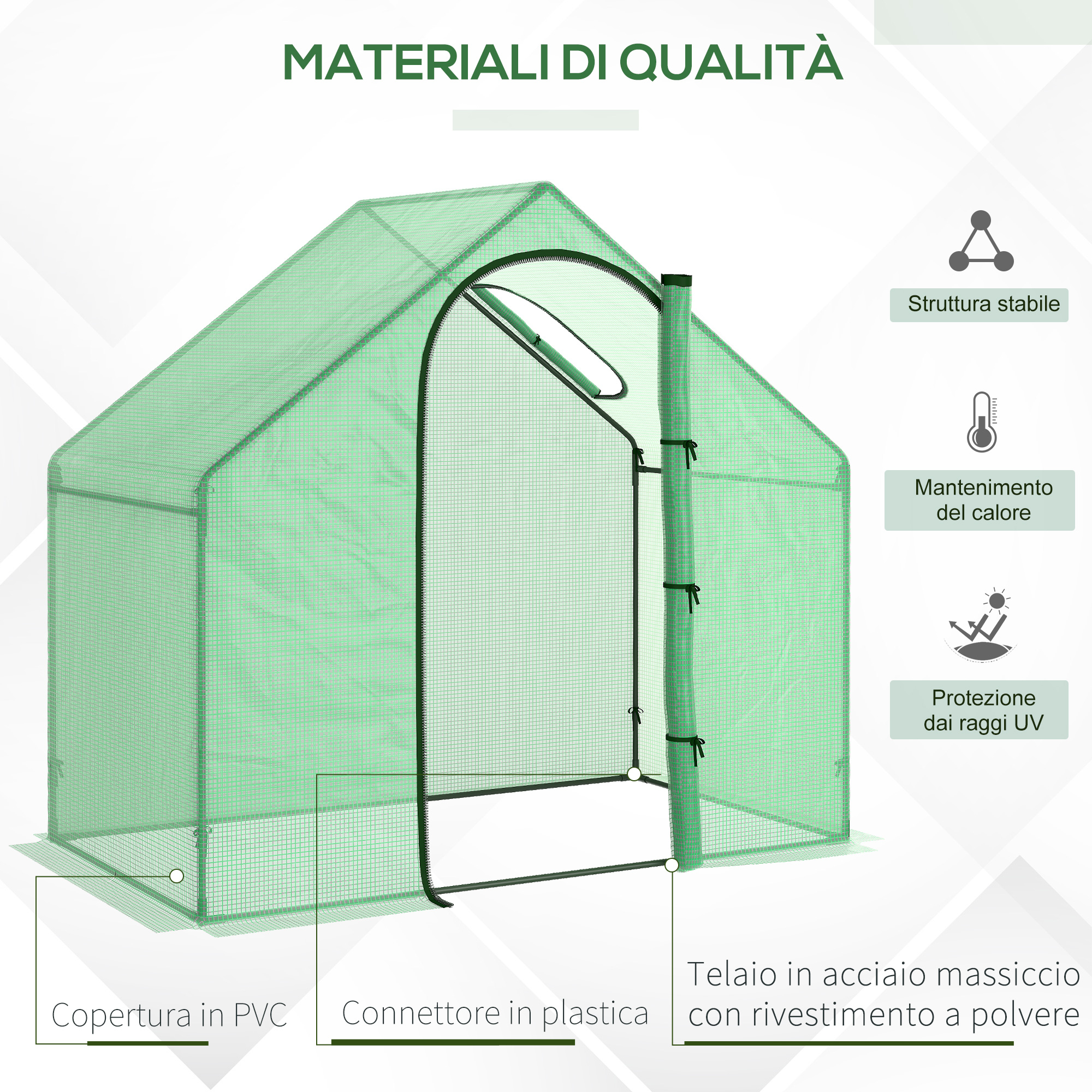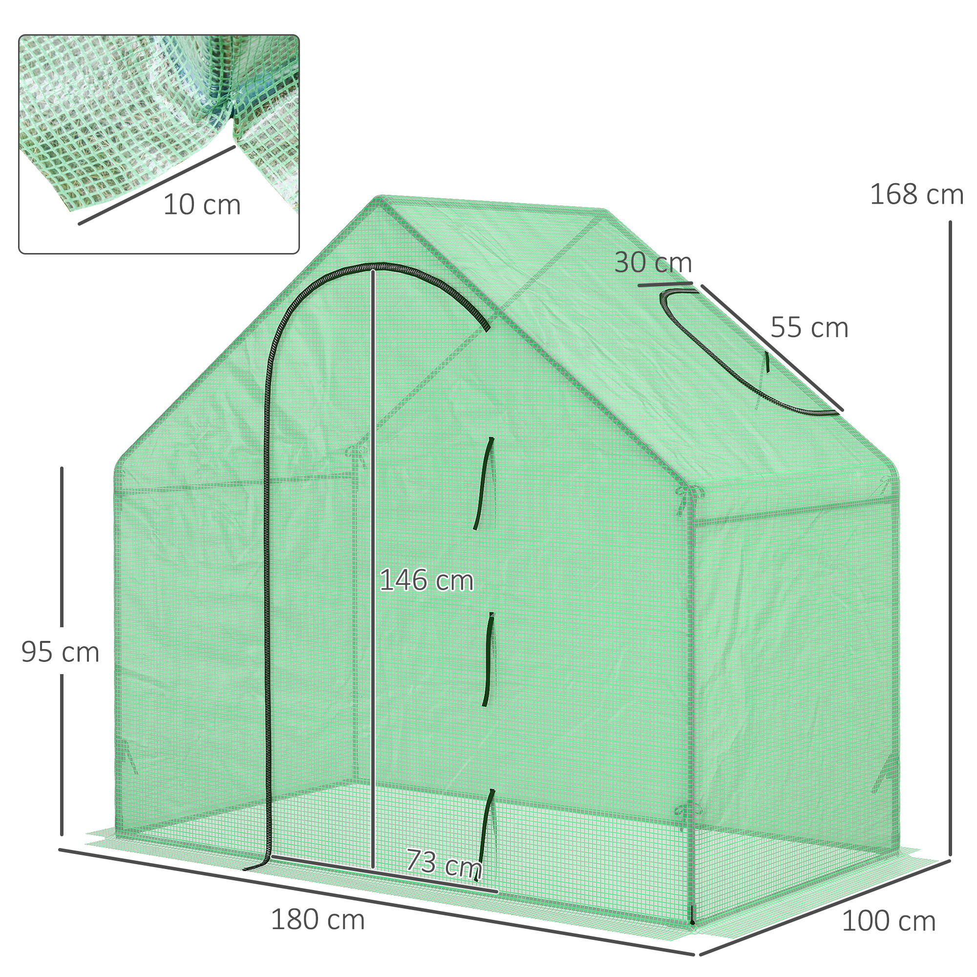 Serra da Giardino con Porta a Cerniera e Presa d’Aria, 4 Funi e Paletti Inclusi, 180x100x168 cm, Verde