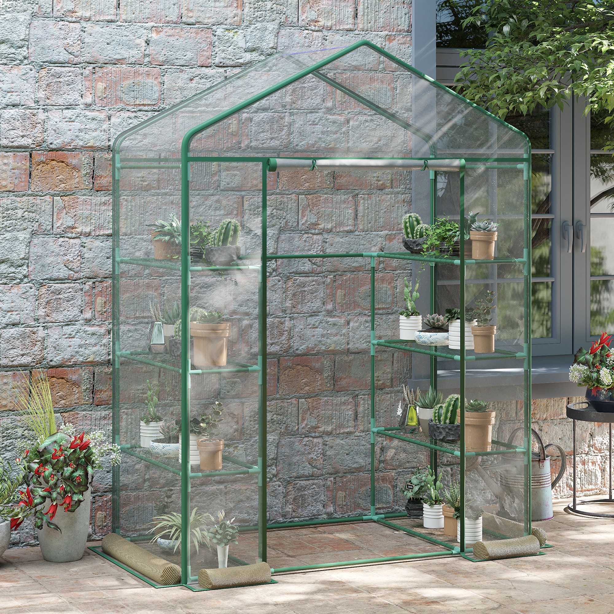 Serra da Giardino in Acciaio e PVC Trasparente con Porta Avvolgibile, 143x73x195 cm, verde