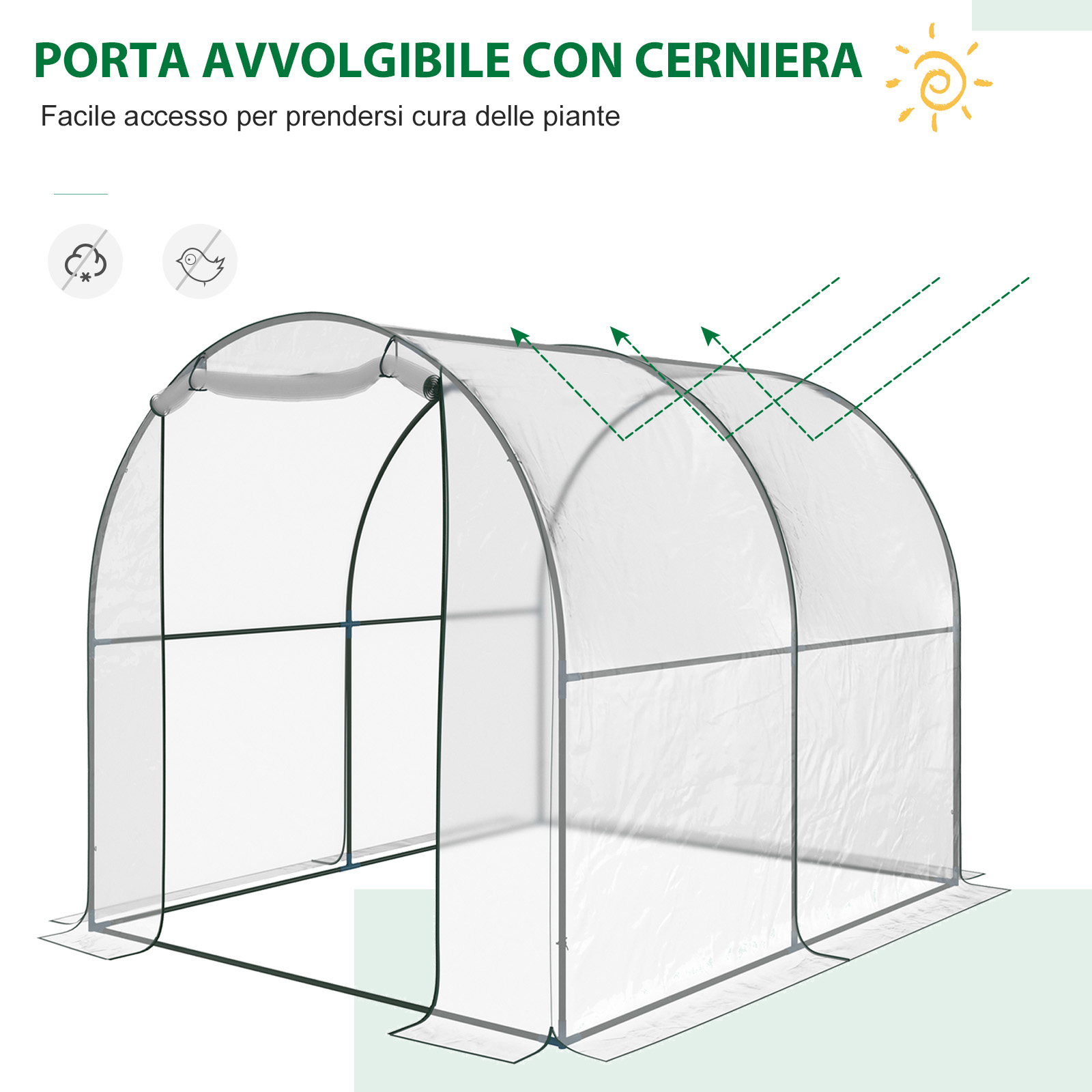 Ti piace coltivare piante aromatiche o avere un bel giardino fiorito tutto l’anno? Questa serra da giardino sfrutta al meglio lo spazio in orizzontale, rendendola perfetta per le piante in vaso a terra. Grazie alle sue porte con cerniera, è possibile accedervi facilmente e potrai inoltre lasciarle aperte per far entrare più luce e chiuderle di notte per proteggerle dal freddo. Prenditi cura del tuo giardino per tutto l’anno con la nostra serra per piante!Caratteristiche:• Pratica serra a tunnel con struttura tubolare in metallo e copertura in PE• Ideale per proteggere le piante dal freddo invernale• Le porte avvolgibili con cerniera consentono un facile accesso all’interno e una buona ventilazione• Materiali adatti all’uso esterno• Facile da assemblare grazie ai connettori in plastica• Serra progettata con una copertura extra lunga per evitare che il freddo passi attraverso il fondo della struttura• Montaggio richiestoDati tecnici:• Colore: Verde scuro• Materiale: Copertura in PE, acciaio• Dimensioni generali: 270L x 90P x 90A cm• Dimensioni delle finestre: 75L x112A cm• Dimensioni tubi di acciaio: Ø16 mm• Copertura PE: 140 g/m²Contenuto della confezione:• 1 x Serra da giardino• 1 x Manuale