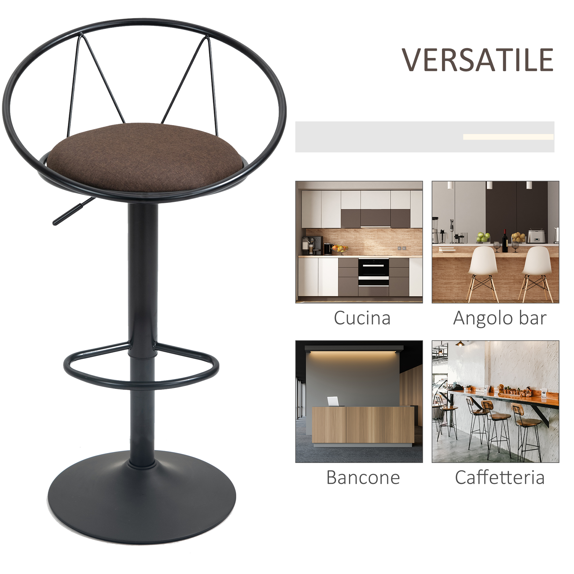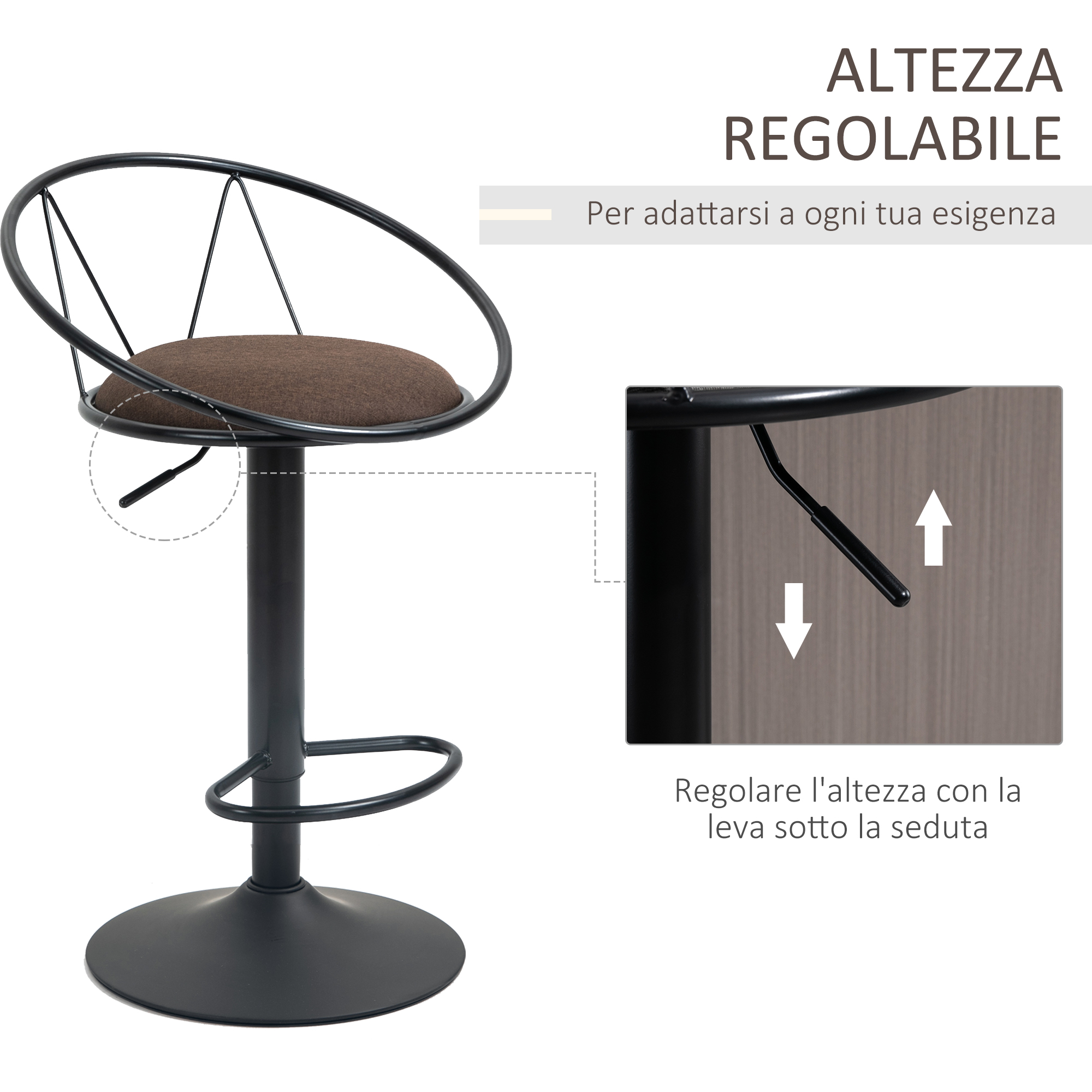 Gli sgabelli da cucina sono l’arredo perfetto per portare un tocco di stile nei tuoi ambienti. Sono girevoli a 360° per lasciarti libertà di movimento e puoi regolare l’altezza in base alle tue necessità. La seduta imbottita con rivestimento in lino rende questi sgabelli alti cucina estremamente confortevoli. I poggiapiedi e lo schienale avvolgente ti permettono di rilassarti mentre ti godi un drink in compagnia.Caratteristiche:• Set da due sgabelli stile vintage perfetti per il bar e la casa• Altezza della seduta facile da regolare con la leva a gas• Sgabelli alti ideali per il bancone della cucina, in soggiorno o nei locali• Sgabello da bar con poggiapiedi integrato• Girevole a 360 gradi per muoversi liberamente• Seduta con morbida imbottitura in gommapiuma e rivestimento in tessuto• Base rotonda metallica con piedini antiscivolo e antigraffio• Montaggio richiesto Dati tecnici:• Colore: Grigio• Materiale: Tessuto, gommapiuma, metallo• Dimensioni generali: 51L x 46P x 78-100A cm• Dimensioni seduta: 35L x 35P cm• Altezza della seduta: 61-83 cm• Dimensioni schienale: 51L x 17A cm• Altezza del poggiapiedi da terra: 20-42 cm• Dimensioni base: Ø41 cm• Capacità di peso: 90 kgContenuto della confezione:• 2 x Sgabelli da bar• 1 x Manuale
