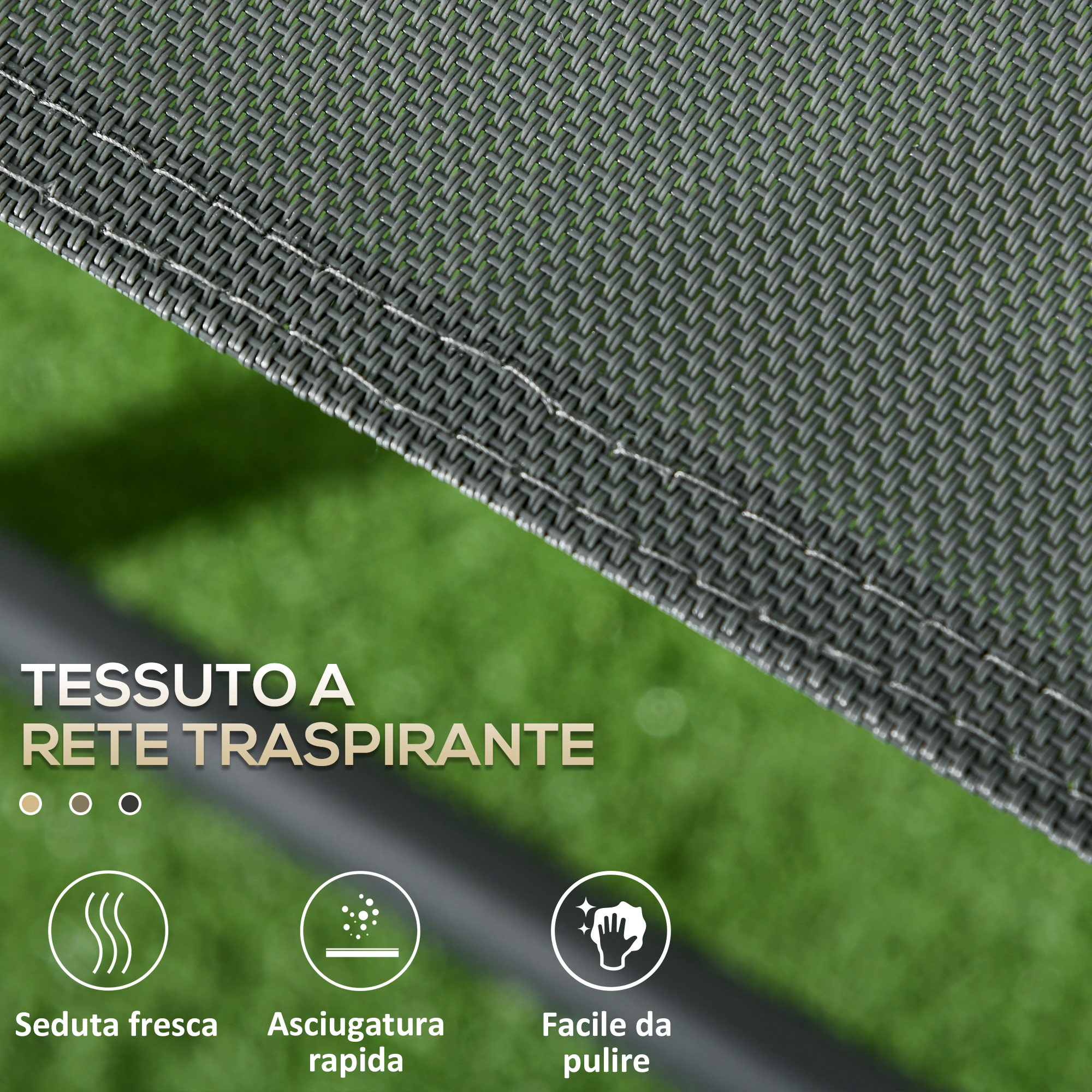 Rendi accogliente il tuo spazio all’aperto con il set da giardino , perfetto per piccoli angoli in grado di ospitare amici e parenti. Il set è composto da 2 sedie da giardino impilabili e un tavolino rotondo con piano in vetro temperato. La struttura in acciaio verniciato a polvere garantisce durabilità a tavolo e sedie, mentre la seduta in rete traspirante, lo schienale alto inclinato e i braccioli ergonomici sono l’ideale per godersi un meritato relax all’aperto.Caratteristiche:• Set da giardino da 3 pezzi composto da 2 sedie da giardino e un tavolino rotondo• Le sedie da esterno dal design impilabile ti consentono di risparmiare spazio quando non le usi• Il telaio in acciaio con rivestimento a polvere del set da esterno garantisce durabilità• Il tessuto a rete traspirante offre una seduta fresca e ventilata• Braccioli curvi e schienale alto inclinato supportano una postura rilassata• Tavolo da giardino con piano in vetro temperato elegante e facile da pulire• Piedini antiscivolo protettivi• Montaggio necessario Dati tecnici:• Colore: Grigio scuro• Materiale: Acciaio, vetro temperato, tessuto a maglia traspirante• Dimensioni della sedia: 54L x 71P x 93A cm• Dimensioni del tavolino: Ø60 x 71A cm• Dimensioni della seduta: 44.5L x 45P cm• Altezza della seduta: 43 cm• Dimensioni dello schienale: 44.5L x 58A cm• Altezza bracciolo da terra: 60 cm• Capacità di peso: 120 kg (sedia), 50 kg (tavolo)Contenuto della confezione:• 1 x Tavolino rotondo• 2 x Sedie da giardino- 1 x Manuale di montaggio
