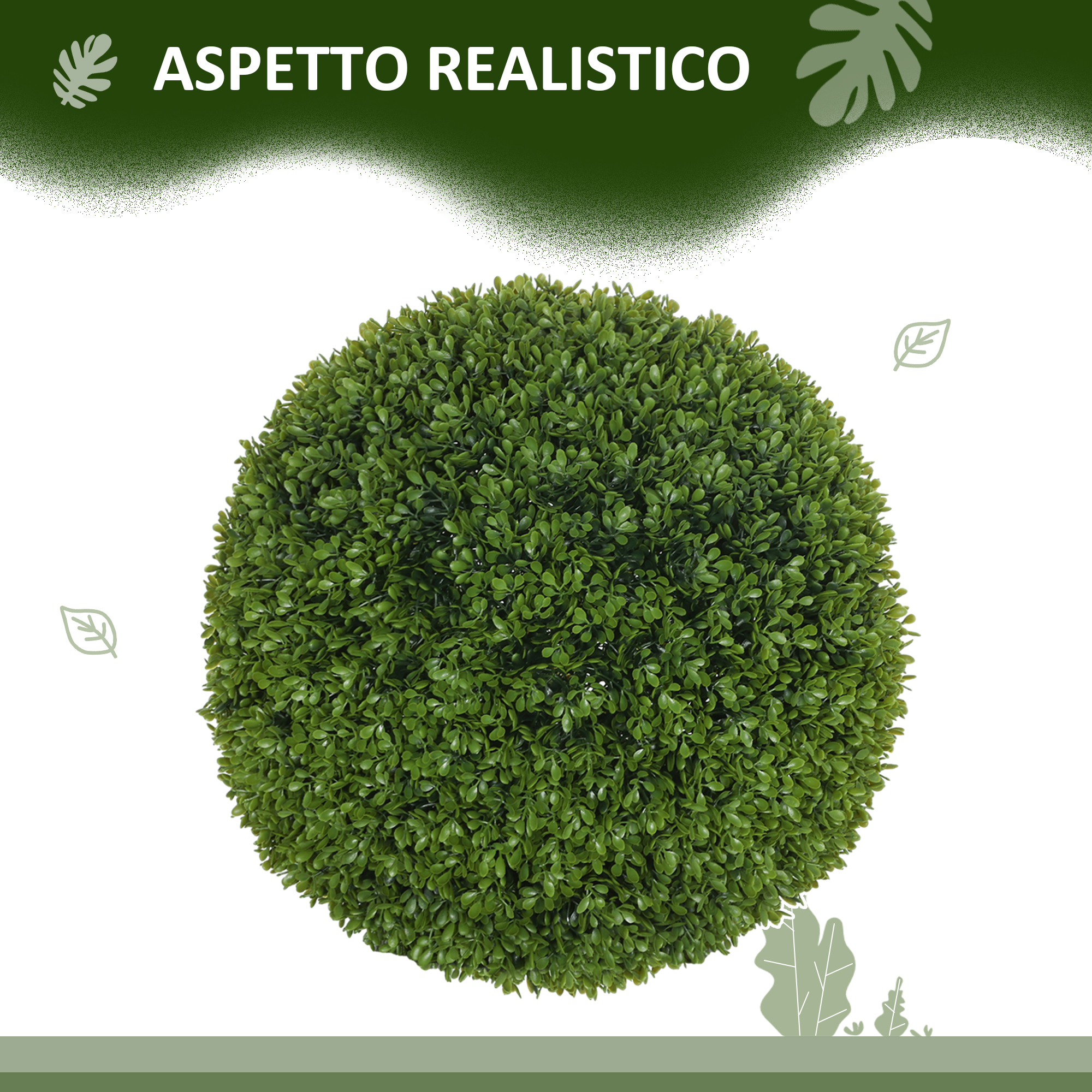 Set di 2 Piante Finte di Bosso in PE da Ø40 cm per Interno ed Esterno, Verde