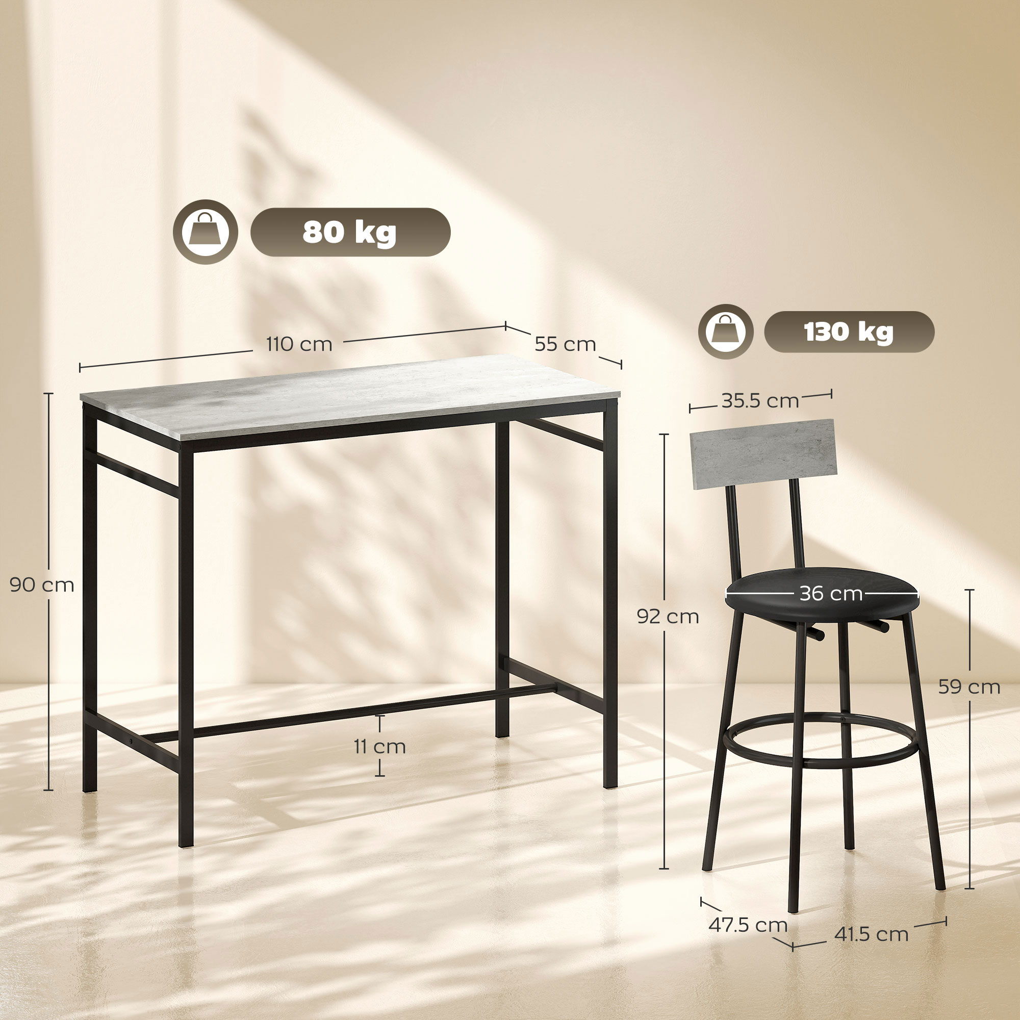 Rinnova la tua zona pranzo con il set tavolo e sedie per 4 persone. Il tavolo rettangolare e le 4 sedie senza braccioli trovano il loro spazio in ogni sala da pranzo, cucina e soggiorno grazie al loro design industriale minimal. La superficie in MDF e la struttura metallica solida crea un mix di praticità ed eleganza contemporanea per tutti gli arredamenti, mentre i piedini antiscivolo assicurano stabilità e proteggono le superfici.Caratteristiche:• Questo set da pranzo da 5 pezzi include un tavolo rettangolare e 4 sedie• Le sedie da pranzo senza braccioli possono essere inserite ordinatamente sotto il tavolo per liberare spazio sul pavimento• Ogni sedia presenta uno schienale di supporto per aggiungere relax• L’effetto legno chiaro con metallo nero aggiunge un tocco pulito e industriale• Il piano d’appoggio in MDF e la struttura metallica resistono all’usura quotidiana• I piedini antiscivolo evitano graffi ai pavimenti e migliorano la stabilità• La superficie rivestita è facile da pulire• Montaggio richiesto con manuale di istruzioni inclusoDati tecnici:• Colore: Legno naturale, nero• Materiale: MDF, metallo• Dimensioni del tavolo: 105L x 50P x 76A cm• Dimensioni della sedia: 36L x 43.5P x 85A cm• Dimensioni della seduta: 36L x 36P x 44.5A cm• Dimensioni dello schienale: 36L x 42A cm• Capacità di peso massima: 20 kg (tavolo), 120 kg (sedia)Contenuto della confezione:• 1 x Tavolo rettangolare• 4 x Sedie da pranzo• 1 x Manuale di montaggio