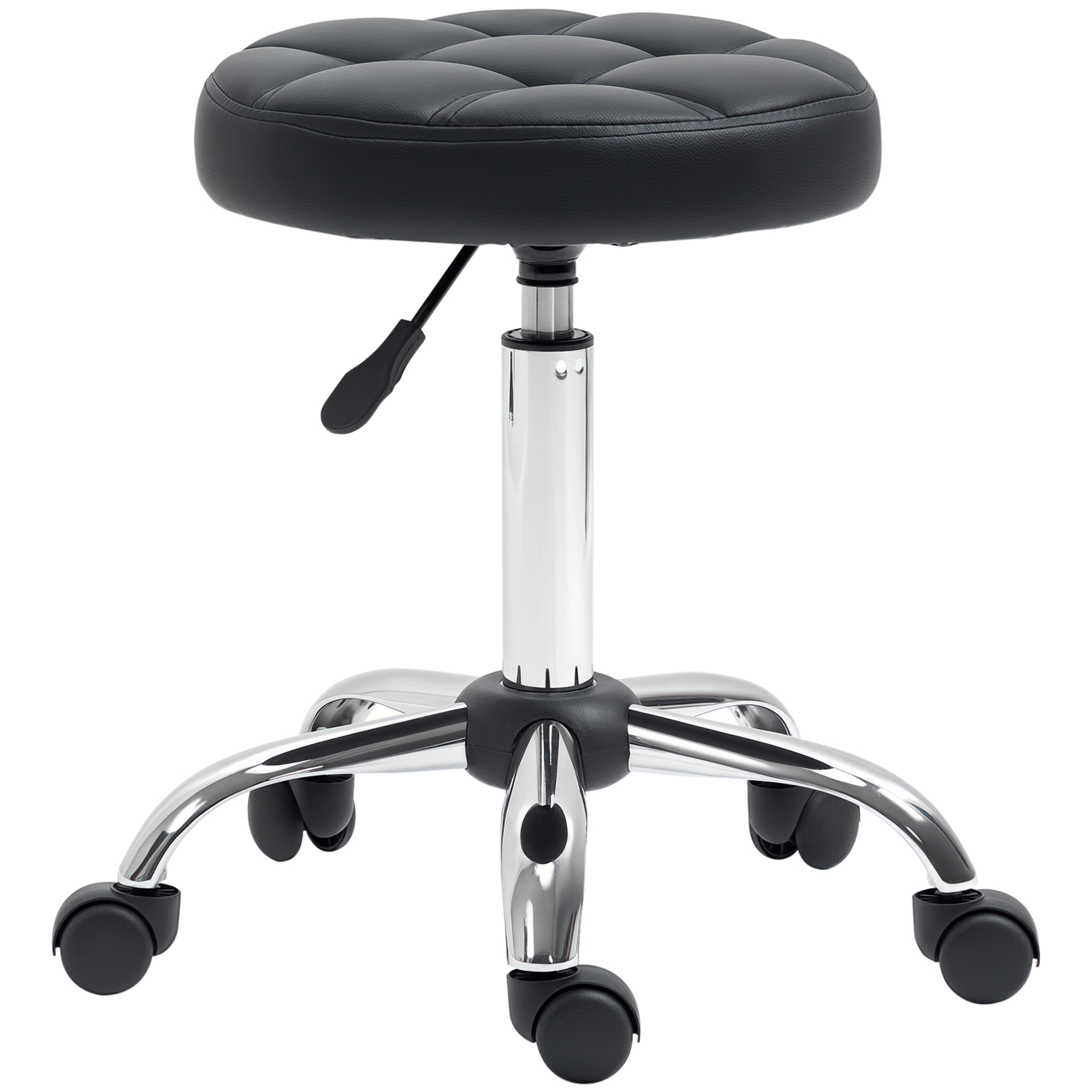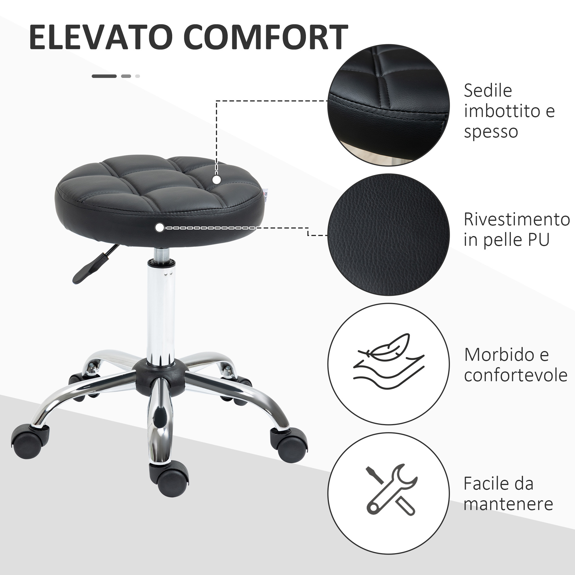 Sgabello Girevole Rotondo con Ruote, Altezza Regolabile e Rivestimento in Finta Pelle, Nero