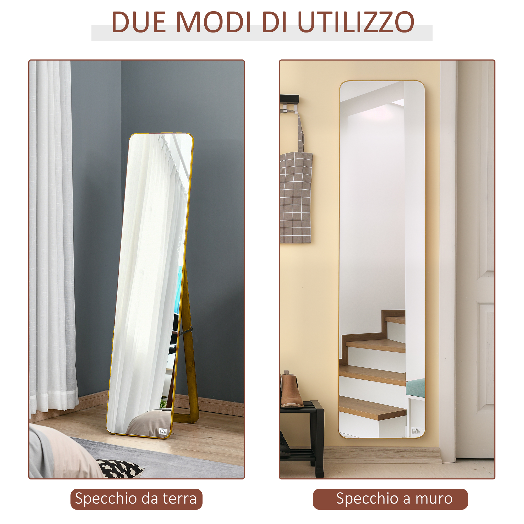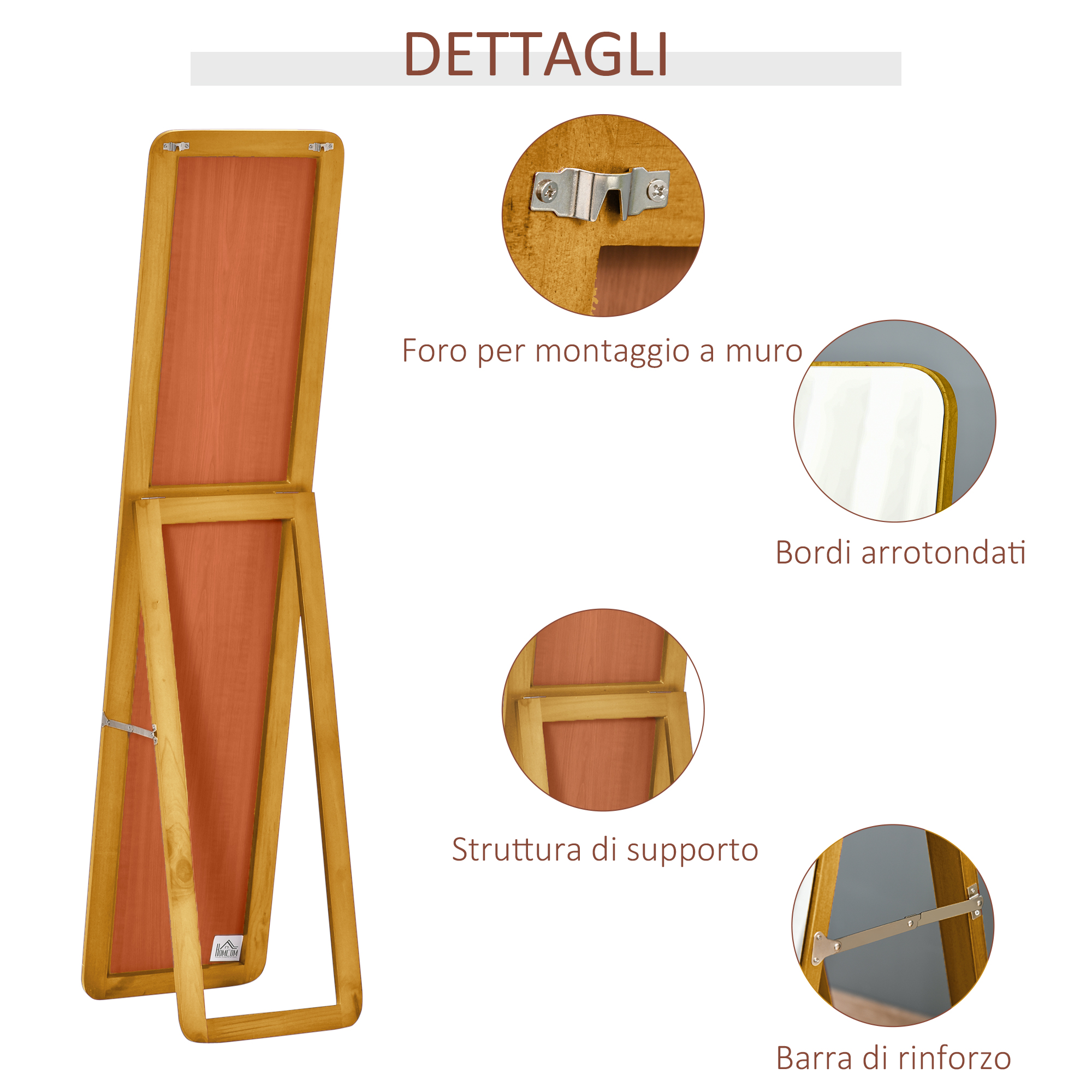 Specchio da Terra e da Parete con Struttura in Legno, Supporto Pieghevole con Cerniera, 37x43x156cm, Noce Chiaro