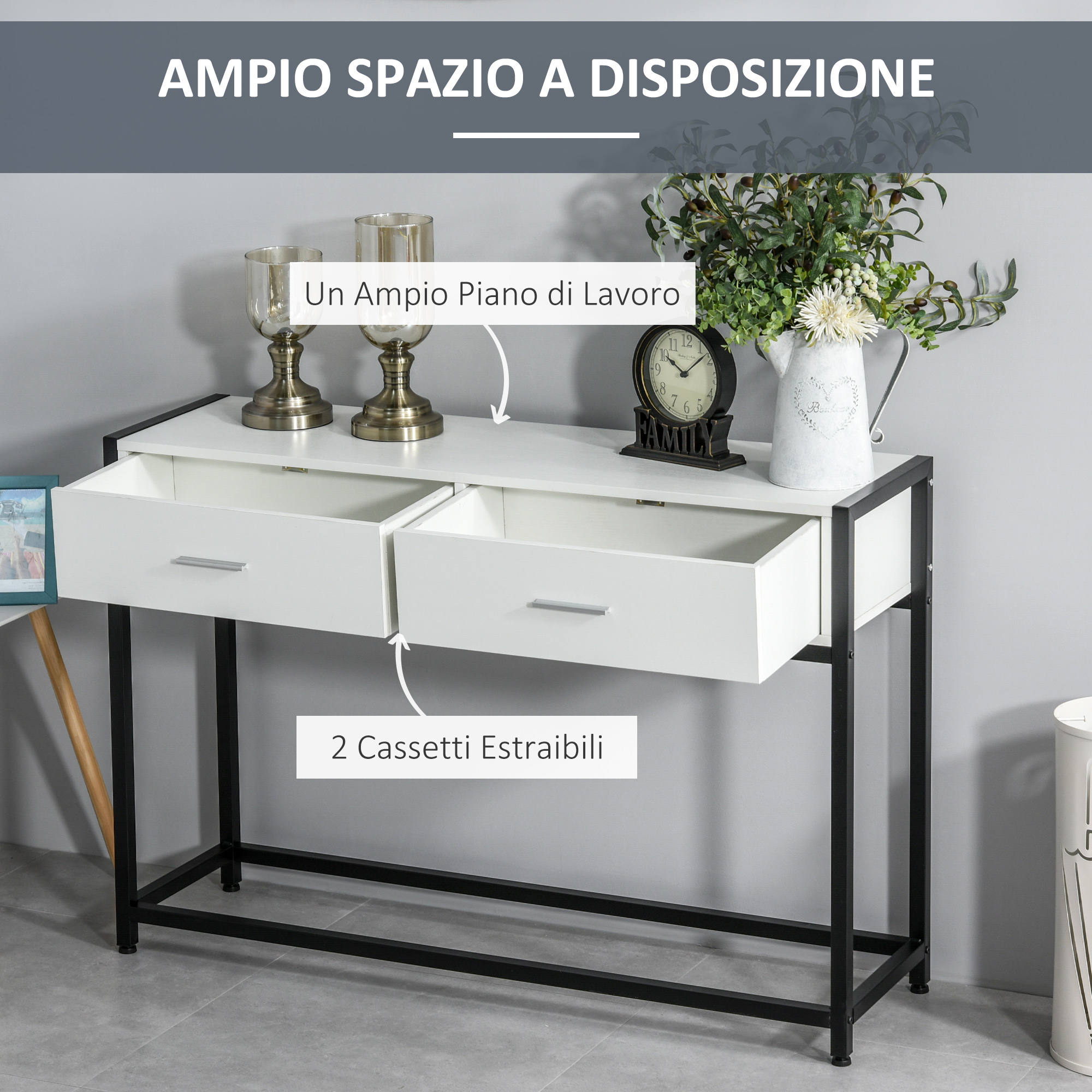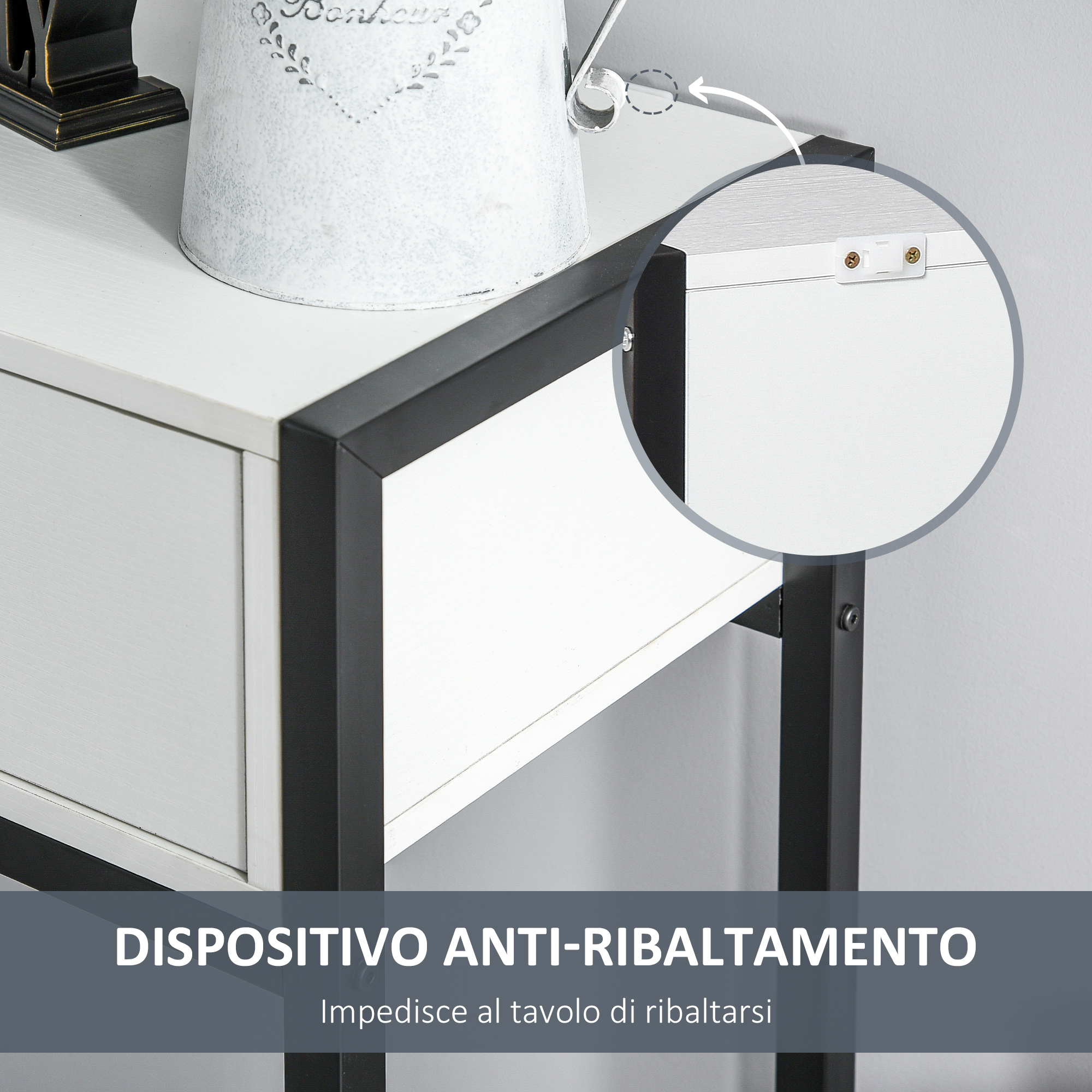 Torna a casa e trova sempre tutto in ordine con il tuo nuovo mobile scarpiera . Costruito in legno bianco, ha un design minimal e moderno, ideale per ogni tipo di ambiente. Ha un piano d’appoggio superiore che puoi usare per sistemare chiavi, monetine e piccoli accessori, tre comode mensole, e un ripiano inferiore per sistemare le scarpe che usi di più. E averle a portata di mano.Caratteristiche:• Design semplice e moderno, ideale per ogni tipo di arredo• Scarpiera armadio con 3 mensole interne, ognuna può sostenere fino a 3 paia di scarpe• Usa il piano d’appoggio superiore per sistemare chiavi, cappelli e accessori• Sistema nel ripiano inferiore le scarpe che usi di più, e che vuoi avere a portata di mano• Costruita con pannelli truciolari, facili da pulire, e gambe in legno• Struttura rialzata• Montaggio richiesto Dati tecnici:• Colore: Bianco• Materiale: Pannelli di truciolato, Legno• Dimensioni generali: 60L x 30P x 92Acm• Dimensioni piano d’appoggio: 57L x 28P x 6Acm• Dimensioni mensole interne: 57L x 26P x 16.5Acm (armadietto)• Dimensioni mensola inferiore: 57L x 26P x 16.5Acm• Dimensioni delle gambe: ?3.5 x 11Acm• Carico massimo: 30kg (totale), 5kg (mensola)Contenuto della confezione:• 1 x Mobile scarpiera• 1 x Manuale