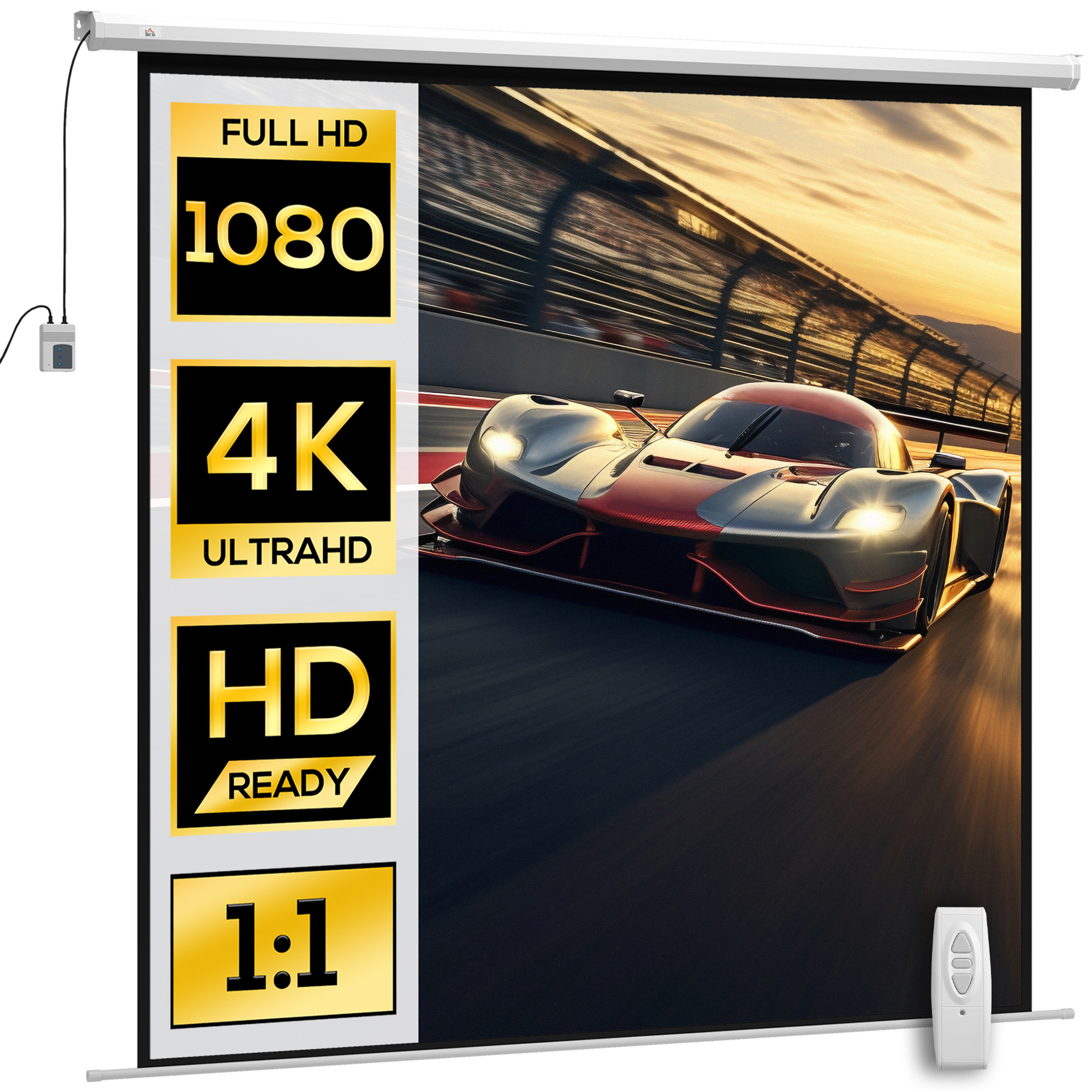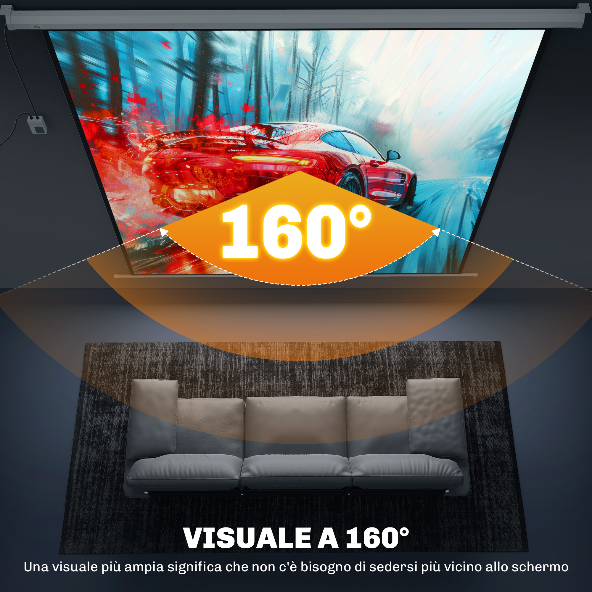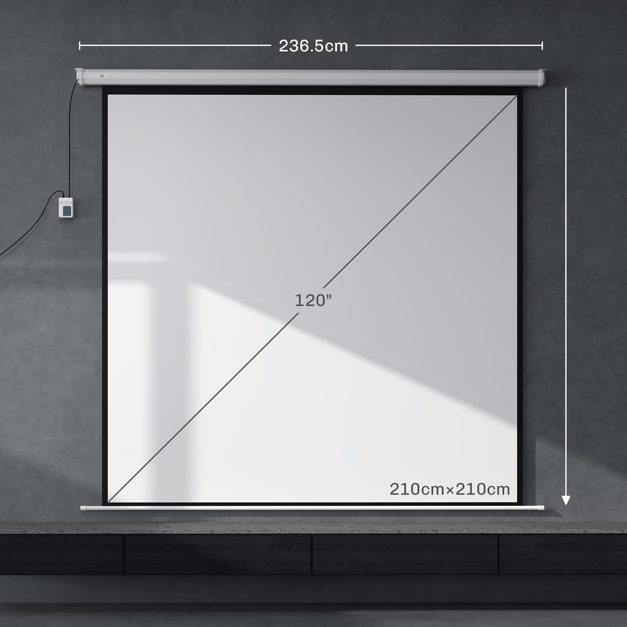 Telo Proiettore Motorizzato da 120″ con Telecomando, in Plastica e Metallo, 236.5x8x236.5 cm, Bianco