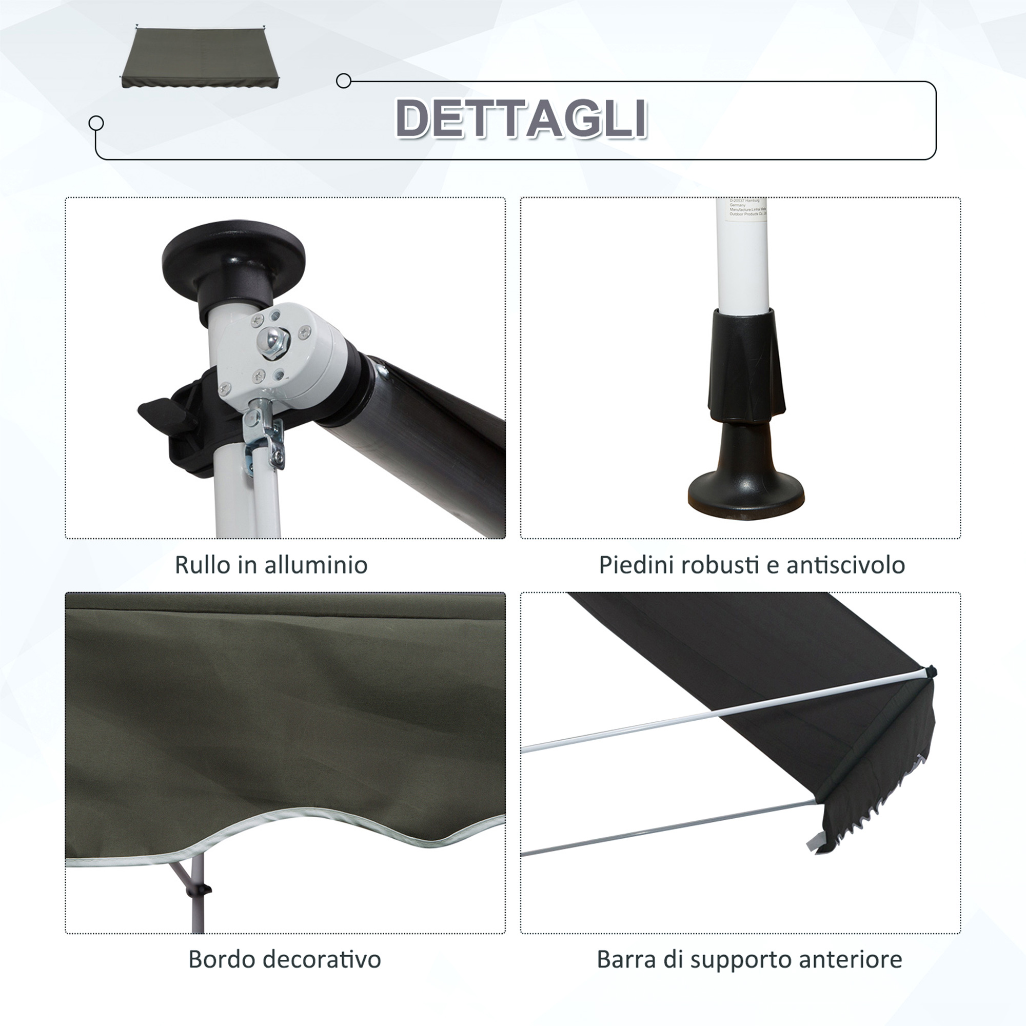 Tenda da Sole 3×1.5 m a Bracci con Manovella, Struttura Telescopica in Metallo e Parasole in Poliestere
