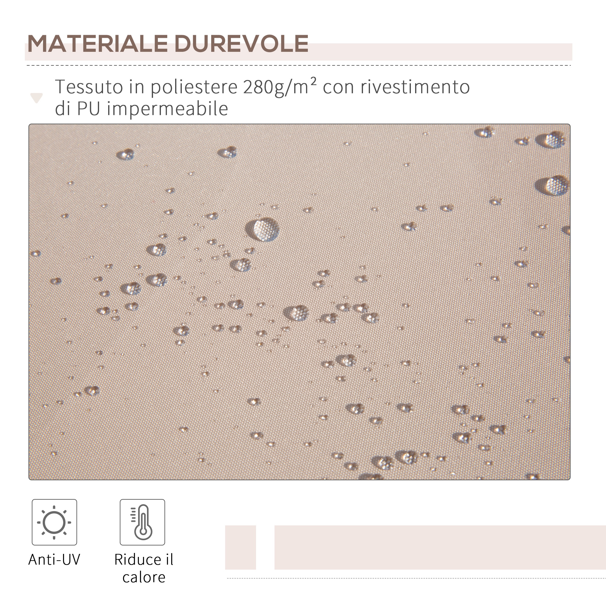 Questa tenda da sole è la scelta ideale: telaio rinforzato e tessuto in poliestere. È facile da montare grazie agli accessori inclusi. Crea una zona fresca nel tuo patio e proteggiti dai raggi UV. NOTA: Non include viti di montaggio per pareti in legno. La corretta installazione è responsabilità dell’acquirente. Fare attenzione con gli esterni in stucco Non adatta a camper e roulotte. Non adatta in caso di pioggia o altre condizioni atmosferiche avverse.Caratteristiche:• Perfetta per l’installazione in veranda, balcone o per proteggere le vetrine dei negozi• Manovella in metallo regolabile per l’avvolgimento e l’apertura manuali• Eccellente protezione contro i raggi UV• Poliestere ad alta densità 280 g/m²• Solida staffa di supporto in alluminio per un uso duraturo• Tessuto in poliestere sostenuto da 2 bracci retrattili, bobina e barra di supporto anteriore• Facile montaggio e installazione grazie al manuale illustrato• Note: Le grandi quantità di pioggia possono accumularsi sul tessuto e causare danni, occorre tirare indietro la tenda nelle giornate piovoseDati tecnici:• Colore: Beige• Materiale: Alluminio, Metallo, Poliestere• Dimensioni complessive: 295L x 245Pcm• Lunghezza manovella: ?1.3 x 150cmContenuto della confezione:• 1 x Tenda da sole• 1 x Manuale​​