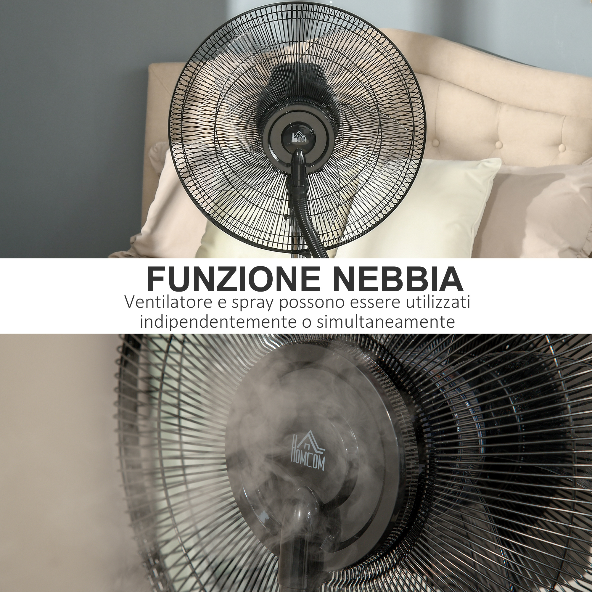 Ventilatore Nebulizzatore con Telecomando da 5m, Timer 12h e Oscillazione 70°, 3 Velocità, 3 Funzioni e Antizanzare, Tanica 3.1L, 90W, ?44.5x135cm Nero