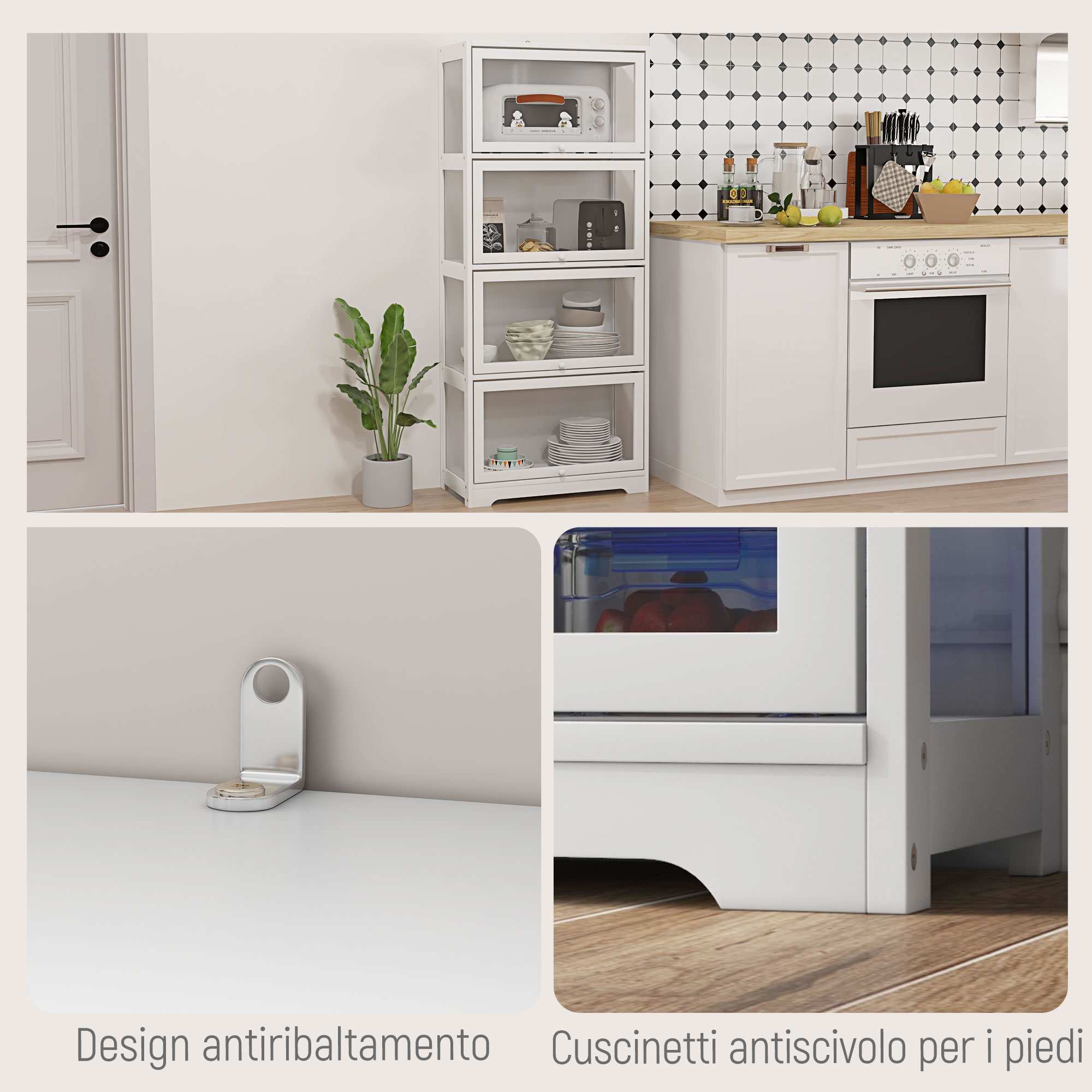 Vetrina per Collezione a 4 Ripiani con Ante a Battente, in Legno e Acrilico, 59x30x139 cm, Bianco
